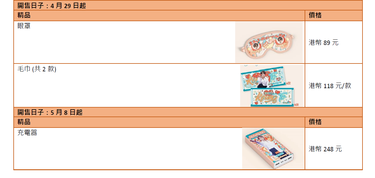 .慈善精品於不同日子限量推出,詳情將於姜濤香港後援會及商場社交平台公佈