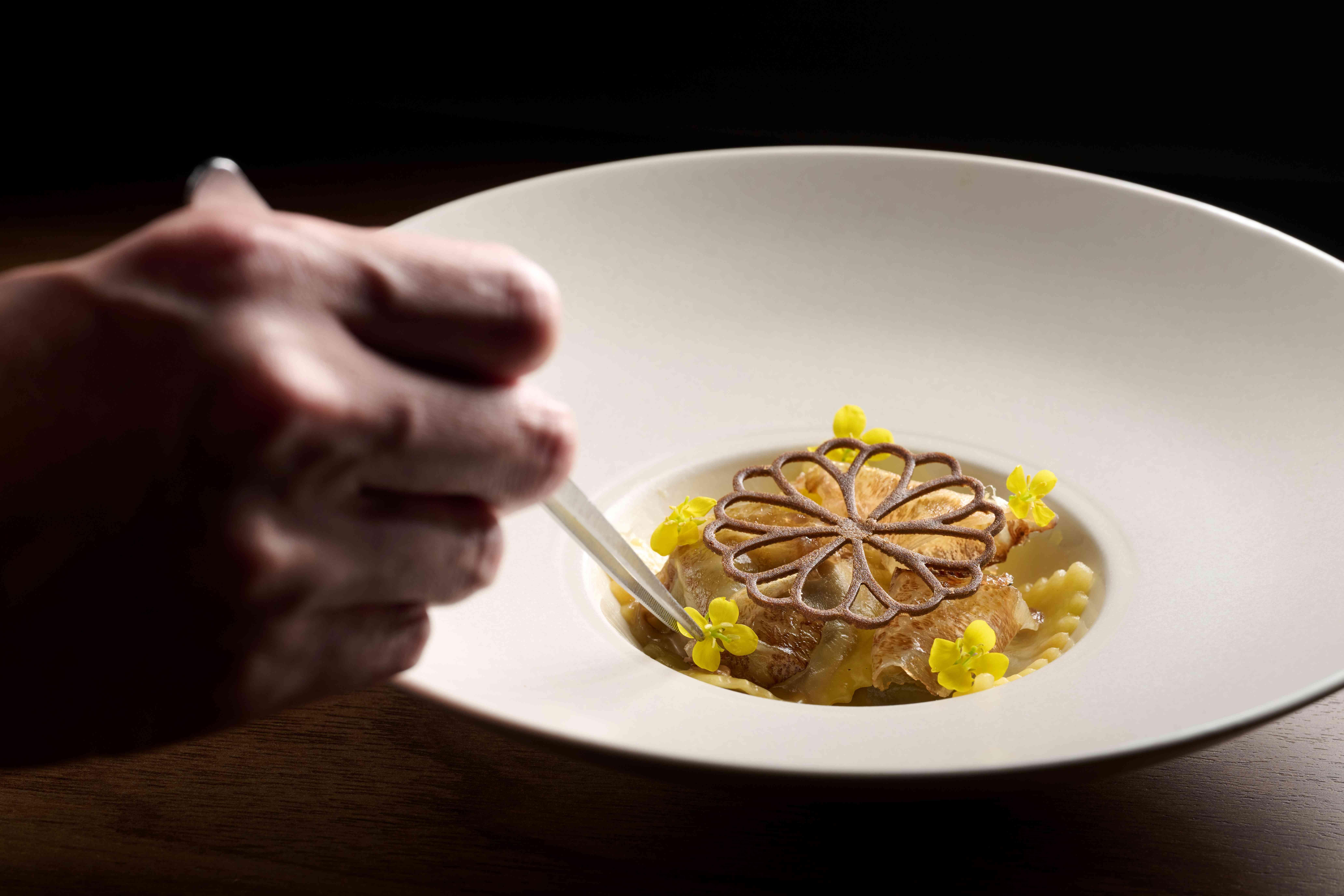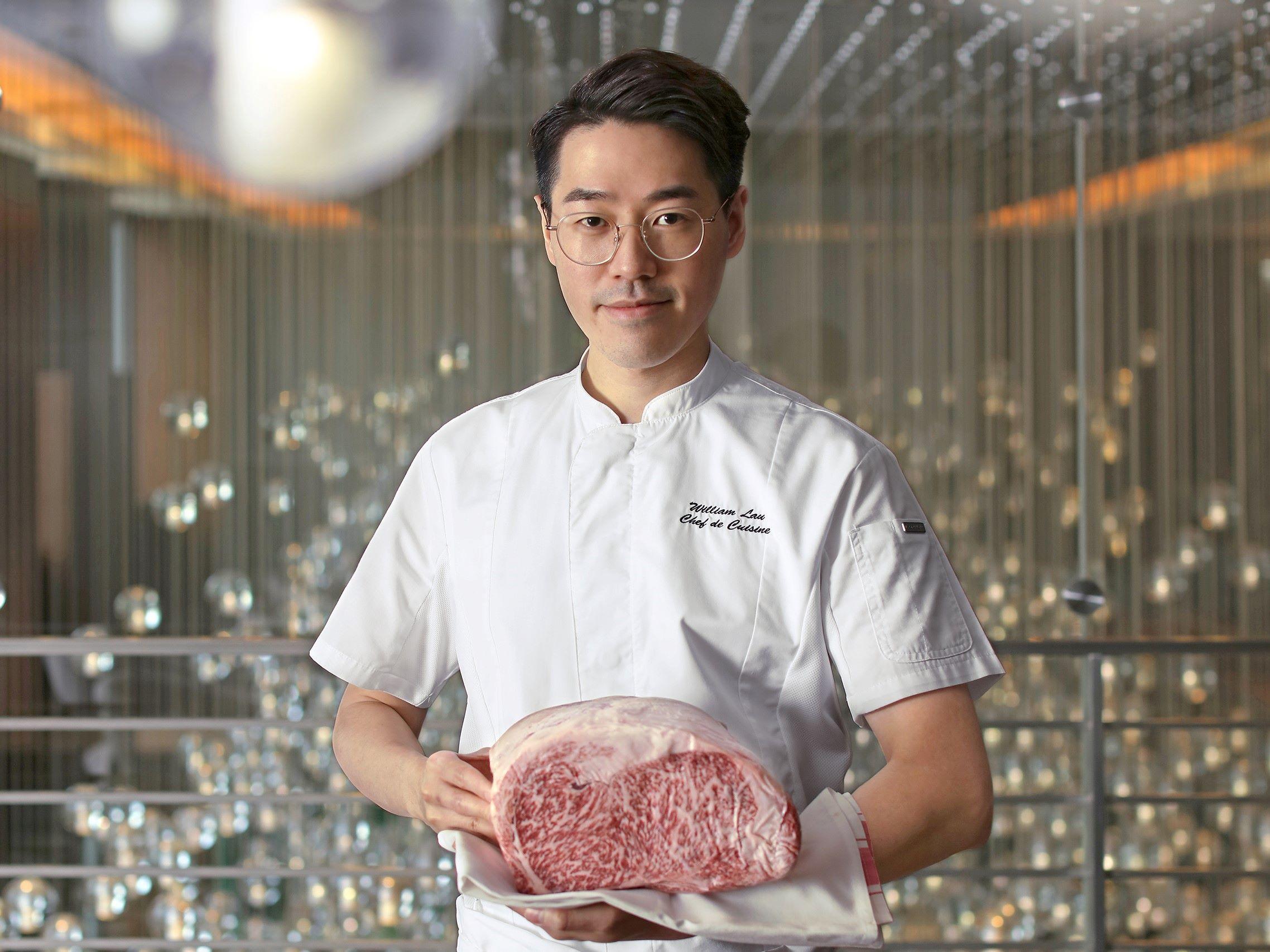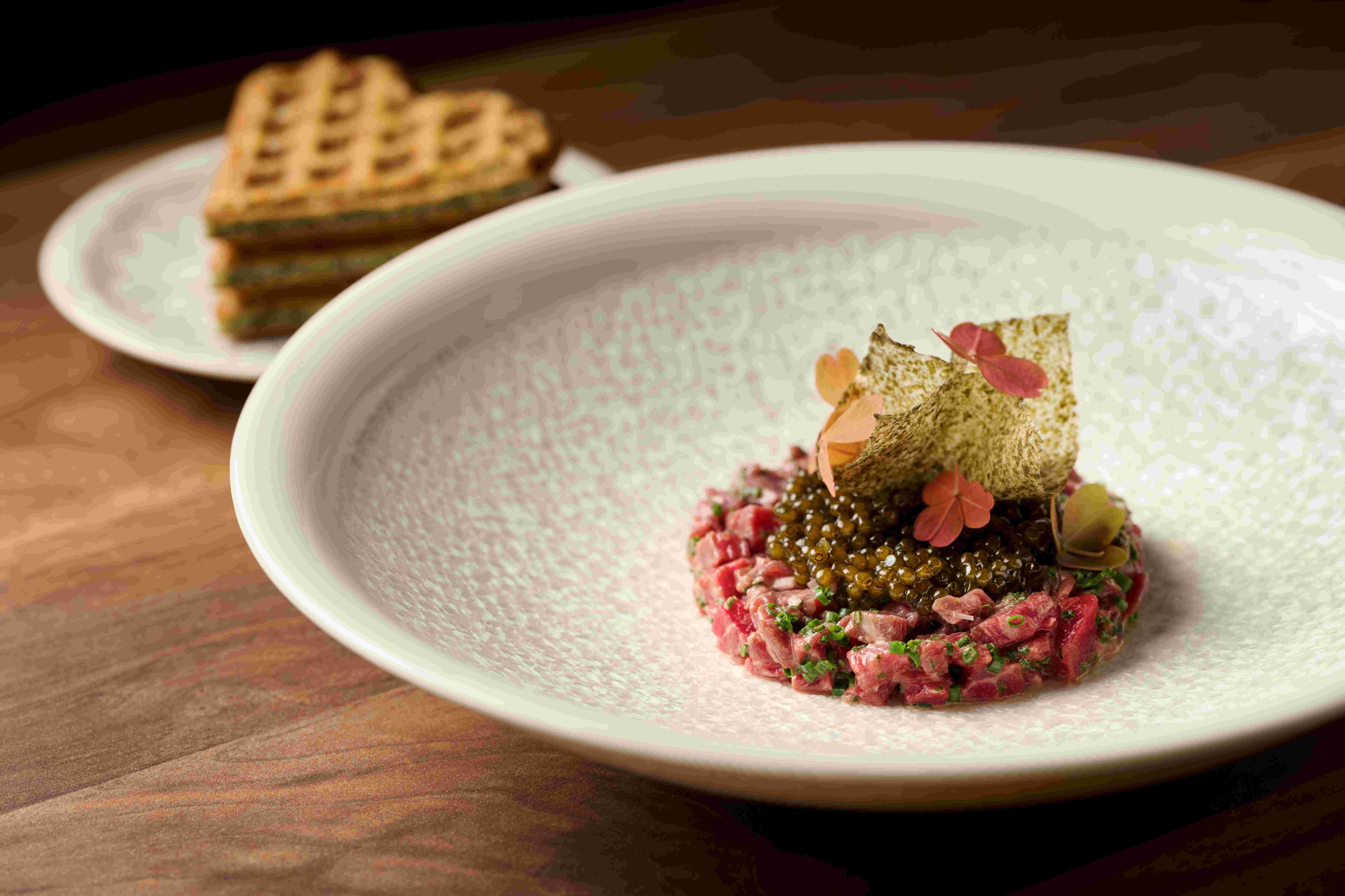 「和牛醇酒饗宴」菜單由主廚William Lau設計,融會法式精巧烹調技藝及日本匠人精神,當中前菜包括「法國頂級Polmard牛肉他他」,精選法國巴黎百年肉商Polmard的出品,配上愛心造型的海苔窩夫,伴以七味紅桑子,成就多重味覺享受;如欲昇華品味體驗,更可以優惠價為菜式配上頂級「Petrossian Royal Ossetra魚子醬」。而「牛尾意大利雲吞」則搭配風乾火腿及煙燻牛油,細膩風味教人一試難忘。