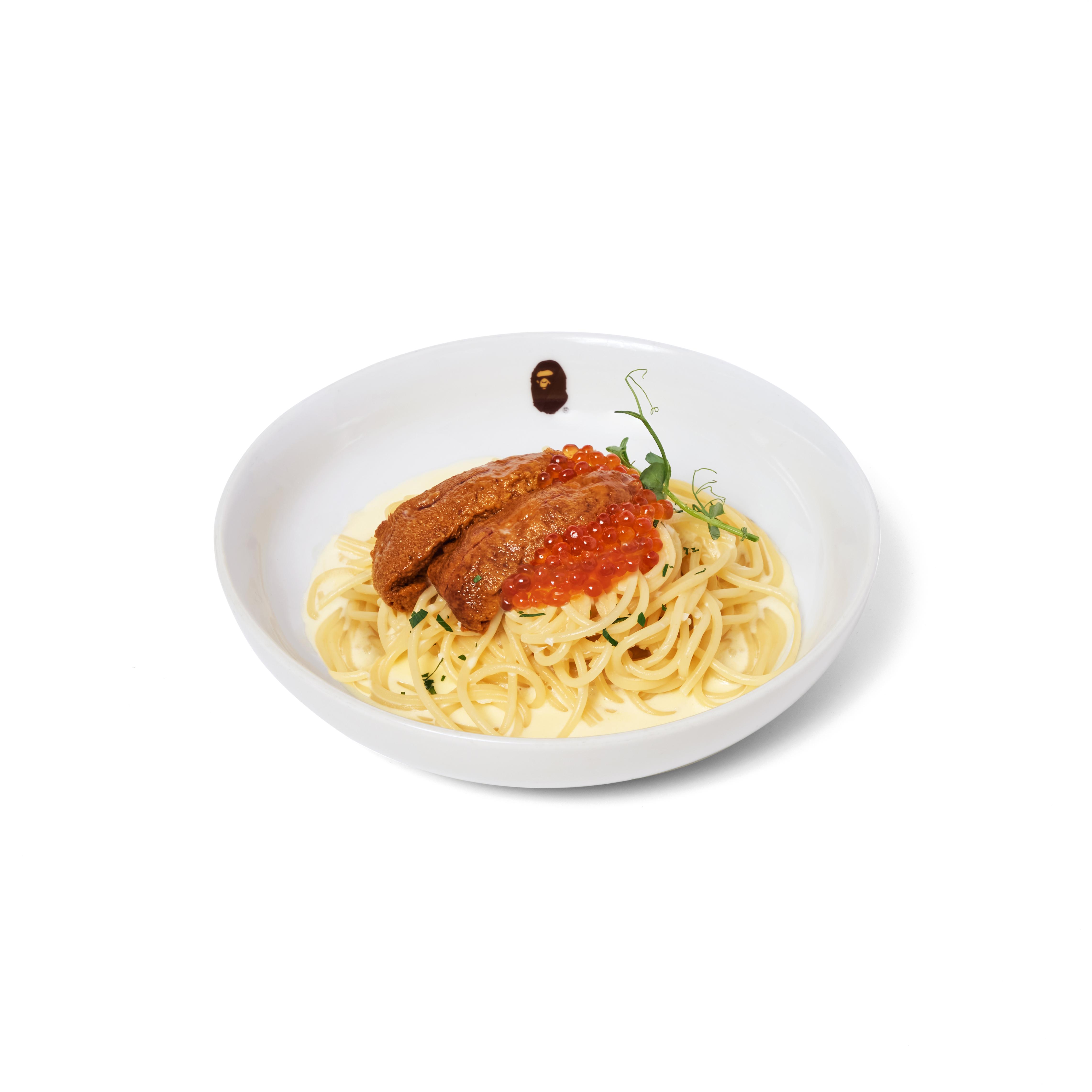 BAPE CAFE!?®主打西日融合的特色美食,帶來顏值和味道兼具的意粉佳餚。包括香辣蕃茄醬意大利豬肉腸意粉配希臘奶酪、大蝦鮭魚籽明太子醬扁意粉、海膽鮭魚籽忌廉汁意粉、香辣大蚵蒜片橄欖油意粉、海膽三文魚籽意大利飯等豐富菜式,融合了海鮮的鮮味和意粉的細膩口感,為味蕾帶來絕妙享受,更是熱衷打卡的美食愛好者不容錯過的新品。由即日起,凡於香港BAPE STORE®和BAPE KIDS®購買正價貨品淨消費滿$1,000及以上即可獲贈優惠卷,免費享用1份指定意粉(每次消費最多獲贈1張,數量有限,贈完即止)。