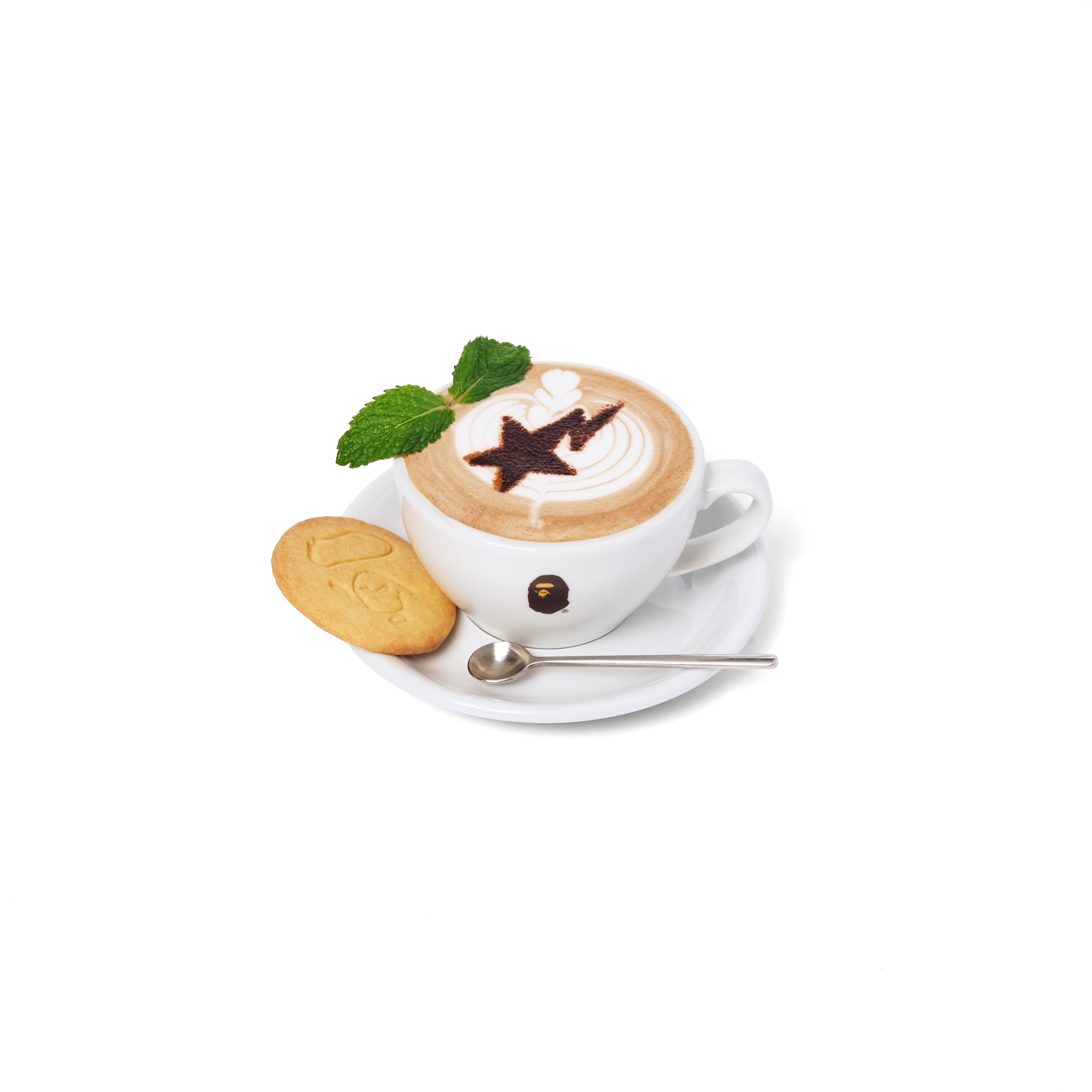 以BAPE CAFE!?® 1周年為主題創作,經典百搭的白色為基底呈現,猿人頭手持咖啡杯結合「BAPE CAFE!?」和「HONG KONG」字樣及LINE CAMO印花圖騰,創新演繹品牌標誌性的BUSY WORKS符號,將街頭服飾美學與生活方式完美融合,呈現出從容自在的鬆弛感和惬意氛圍。