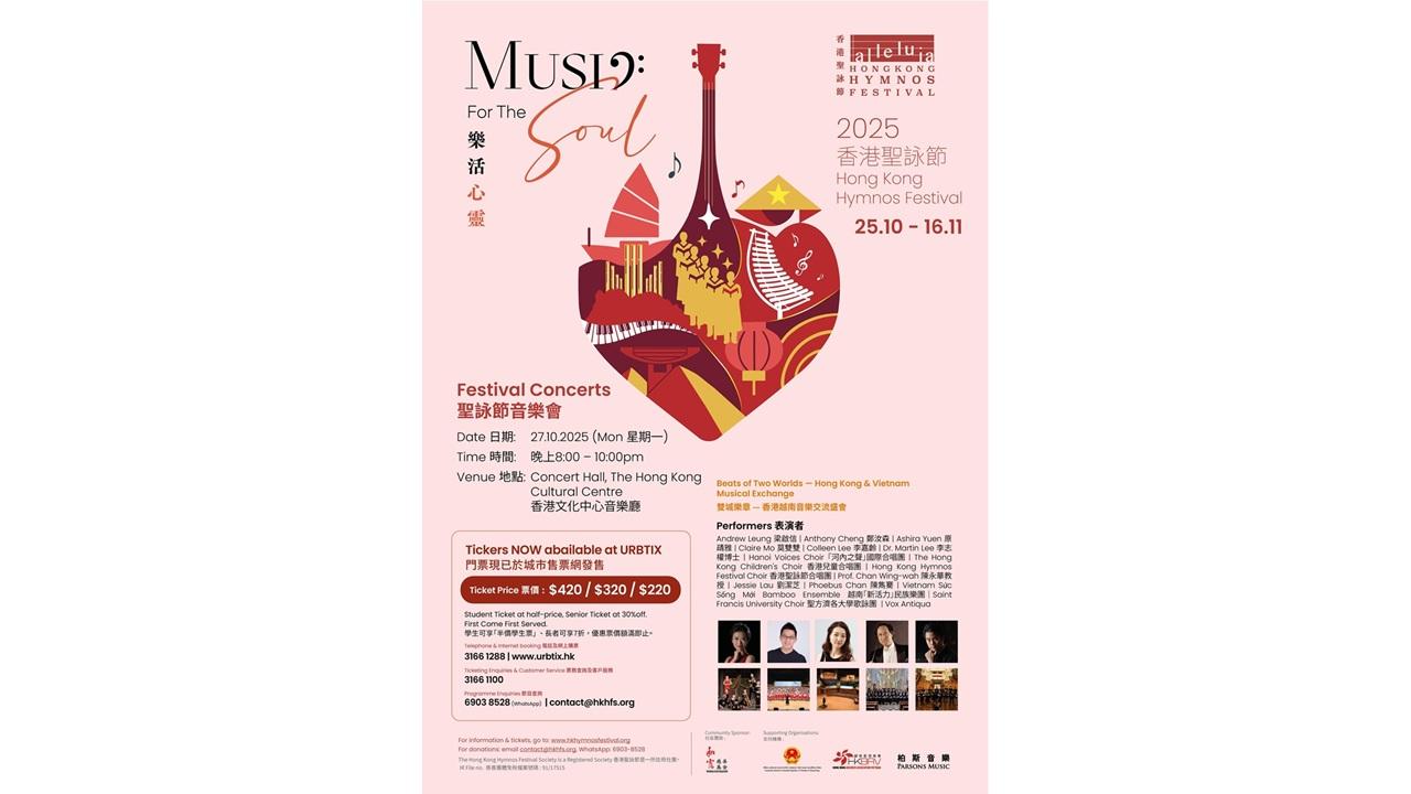 2025年香港聖詠節將分別在香港及越南河內舉行兩場演唱會,並邀得越南的「新活力」民族樂團及「河內之聲」國際合唱圑首次來港演出。香港的音樂會將於10月27日星期一在香港文化中心音樂廳舉行,精彩節目包括:香港傑出鋼琴家李嘉齡和來自越南的莫雙雙以鋼琴四手聯奏J.S. Bach 巴哈的Schafe Können Sicher Weiden《善牧羊群》,香港兒童合唱團用越南語唱《公雞》,「新活力」竹樂團以越南傳统樂器演奏聖樂,還有由陳永華教授指揮220人組成的聖詠合唱團给大家獻唱多首名曲等等。