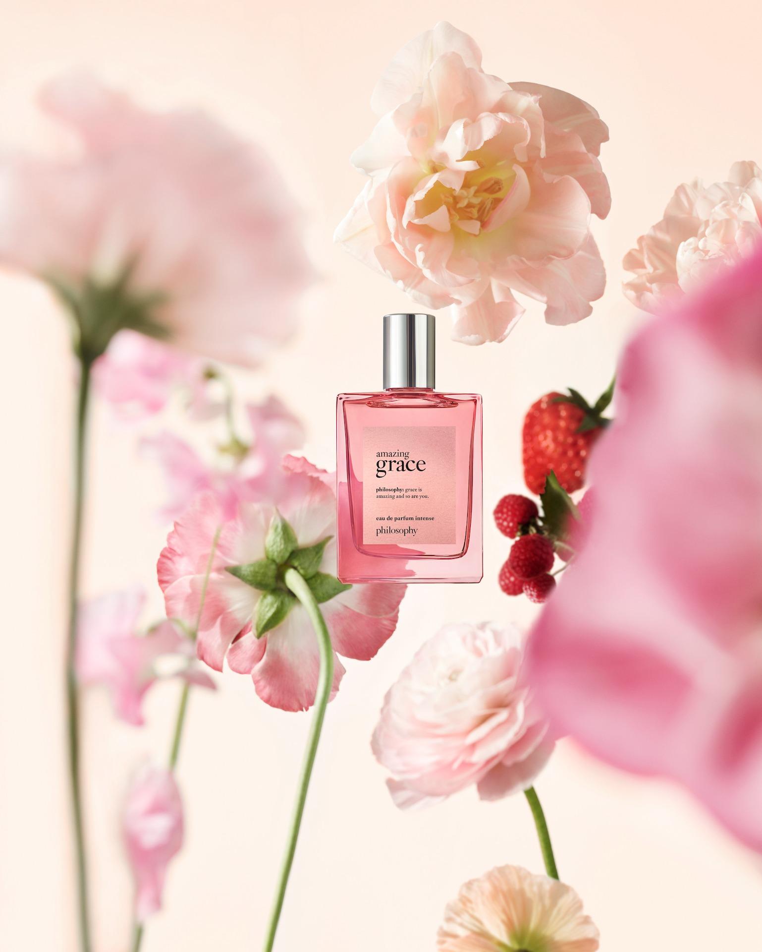philosophy 1996年推出經典的amazing grace淡香水,品牌最近新出amazing grace馥郁純淨香水,保留淡香水的純淨花香和嫵媚氣息,融入獨特花果香調,並令香水更持久。全新馥郁純淨香水薈萃豐富的粉紅色香調,包括飽滿多汁的紅色漿果、可持續採購的格拉斯玫瑰精萃及品牌經典淡雅麝香,淬煉成濃縮馥郁的花果麝香調,嫵媚現代而愉悅甜美,一整天感覺美妙優雅。