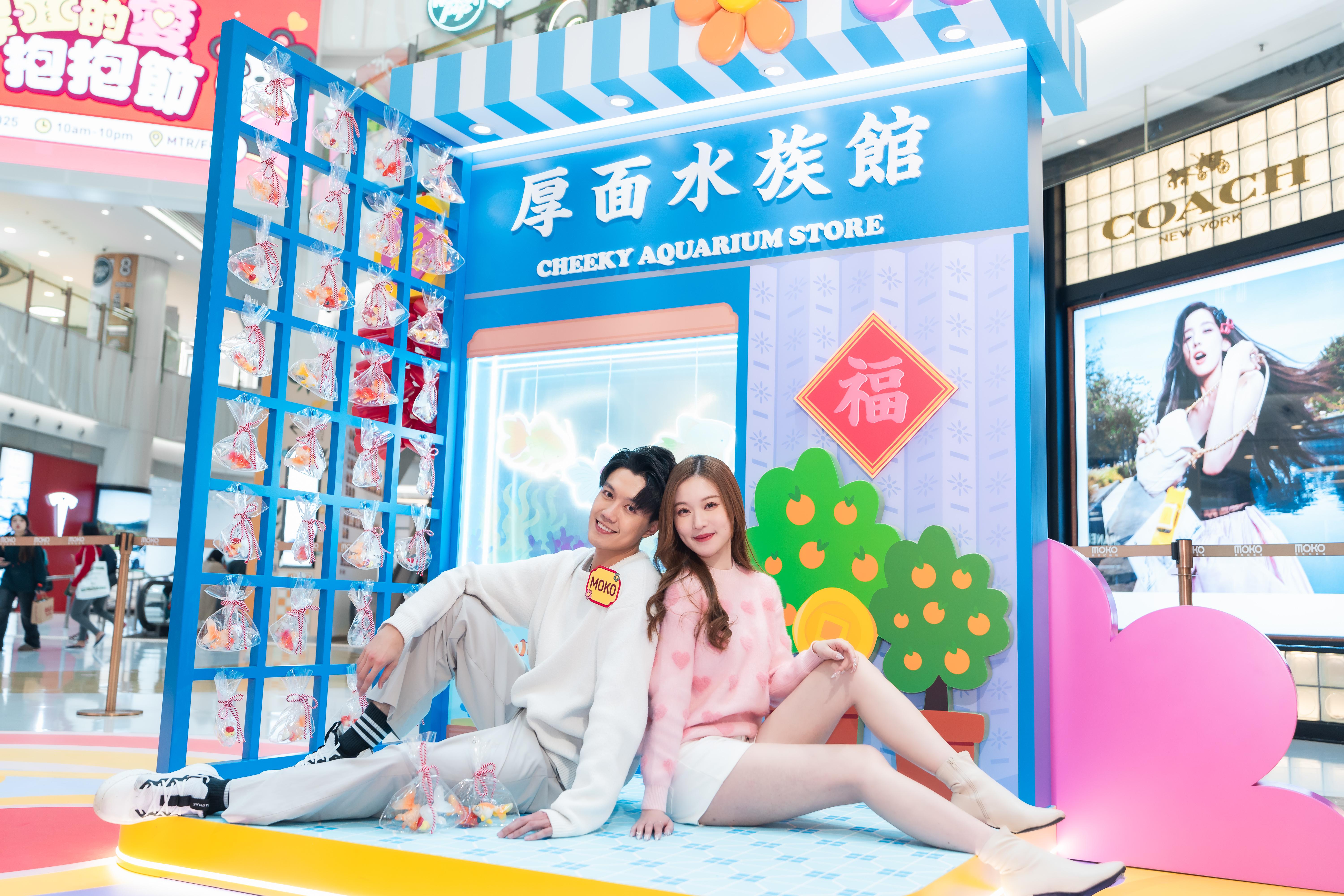 情人節當然要抱抱身邊摯愛! MOKO 新世紀廣場由即日起聯乘本地人氣插畫家Cheeky Cheeky厚面子,以花墟及金魚街等地標為靈感,設5大旺角主題打卡位。在「厚面花墟」及「厚想運到金魚街」擺放3米高的招財貓、巨型金魚缸及厚面子,絕對是粉絲必影。