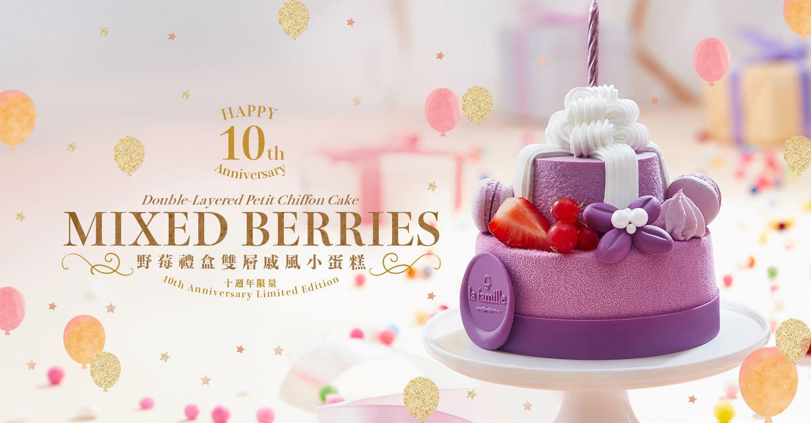香港蛋糕品牌La Famille踏入十周年,除每月舉行大抽獎外, 更推出全新十周年限定雙層戚風小蛋糕 「 野莓禮盒」及兩款復刻版的經典戚風小蛋糕,最平$60起就能食到口感豐富的戚風蛋糕,不論是一人獨享或是和好友分享都一樣滋味!