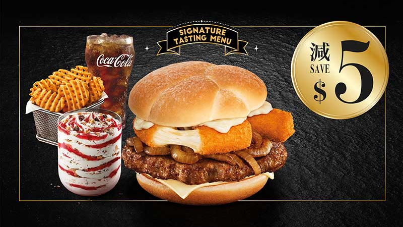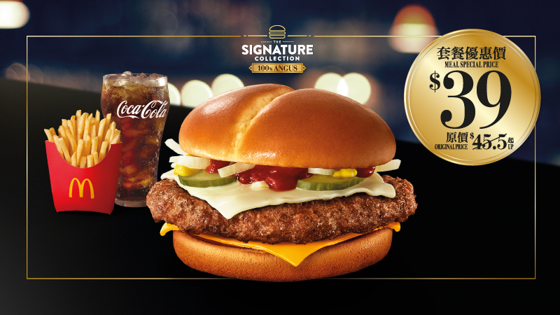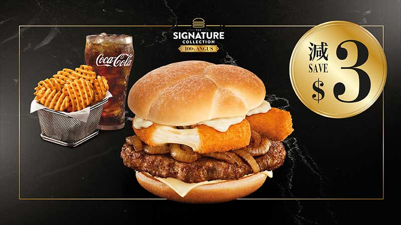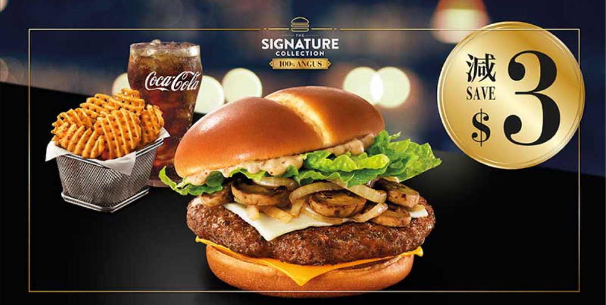 下星期亦繼續有The Signature Collection系列優惠,延續100%安格斯牛肉盛宴!各位「牛魔王」記得不要錯過,三重芝士安格斯或蘑菇安格斯超值套餐減$3優惠,以抵價歎層次豐富的重磅牛肉漢堡。另外亦有豐盛之選三重芝士安格斯配朱古力脆脆草莓麥旋風四道菜套餐減$5,朱古力與士多啤梨的完美配搭必定讓您回味無窮。更有$9芒果新地,順滑雲呢拿味新地加入香濃芒果醬,為美味一餐畫上完美句號!