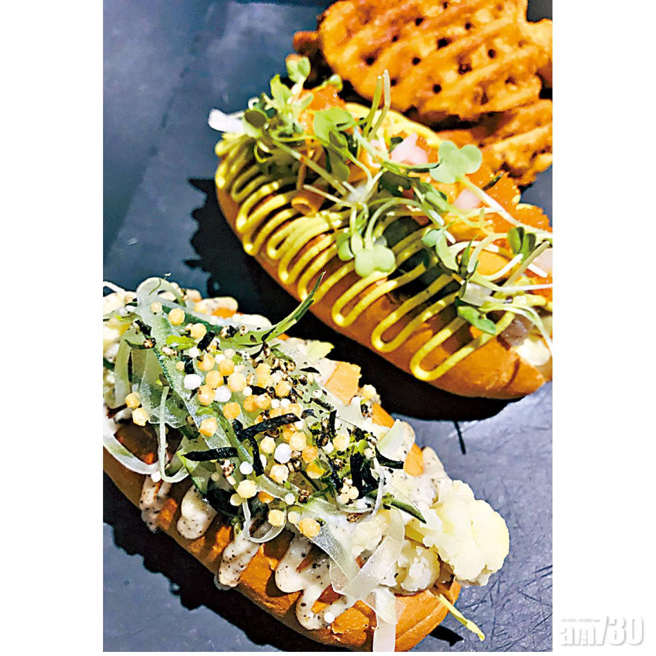 「頑皮熱狗」系列就向多個國家的地方菜致敬,食材配搭更講求多重質感,例如德國式酸椰菜熱狗中的薯片,就是模擬豬手的脆皮,墨西哥式牛油果番茄熱狗,靈感來自墨西哥Nachos,伴著招牌牛油果醬及番茄沙沙,而避風塘熱狗中的黃金炸蒜當然是避風塘炒蟹的靈魂所在,加上蟹柳條味道更加像真,上面的辣椒脆脆,外表就如指天椒,食落是微辣的脆口零食,非常有趣!嫌變化還不夠多,店內特設「自由添加配料吧」,提供新鮮洋葱碎、黑橄欖、熱狗醬、酸青瓜、醃甘筍及葱花,想大加特加無任歡迎。