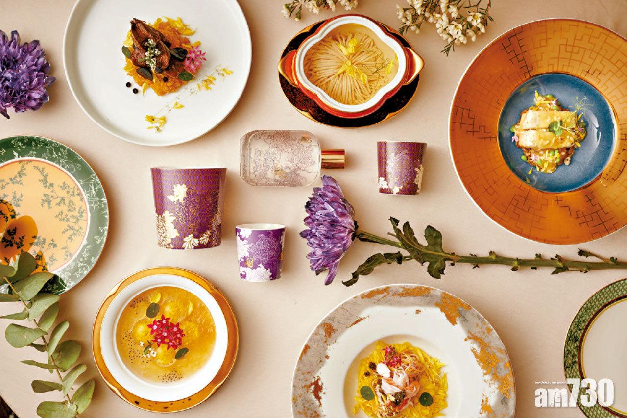 行政總廚張嘉裕以五種烹調手法呈現出菊花的形、色、味,將君子之花的美態綻放餐桌。