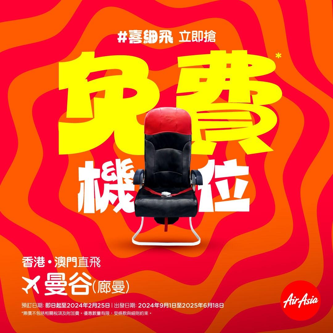 免費機票|AirAsia限時優惠 必搶免費機位 香港飛清邁/曼谷/吉隆坡 單程$28 起