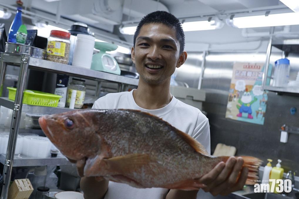 老闆Derek向我們展示食材時,拿出一條近一呎半長的紅立魚。
