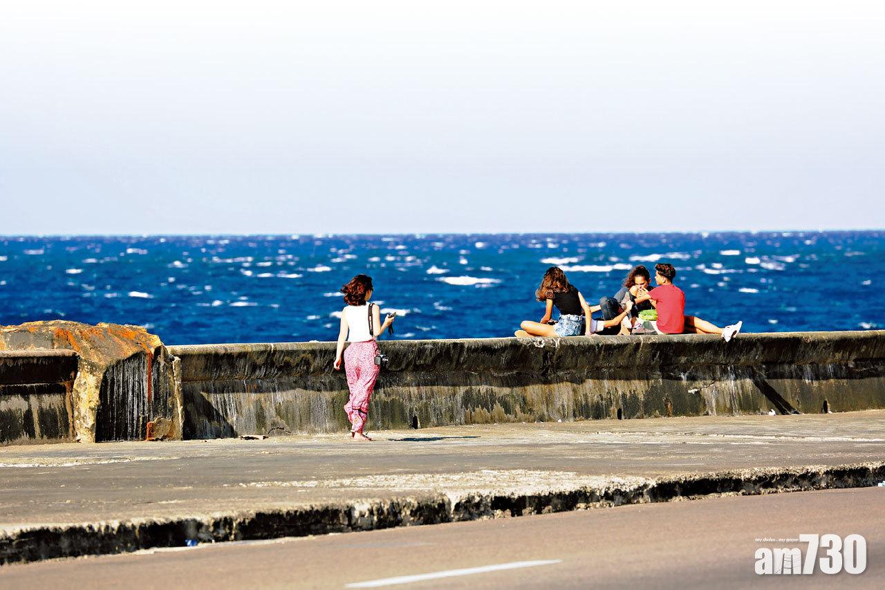 古巴人享受看海的時光。