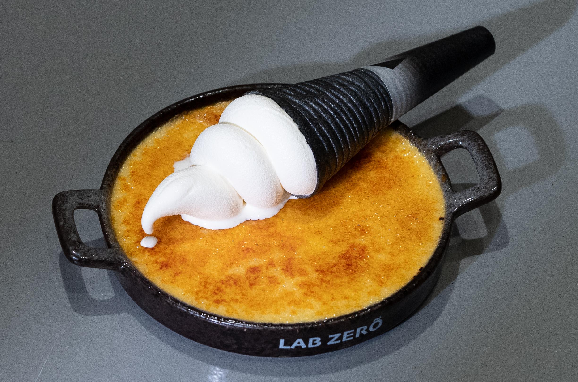 LAB ZERÕ的刨冰用上日本直送冰磚,連製冰機也是日本製造,乾淨衛生而且有誠意。店舖更聯於社交媒體 Instagram 坐擁過十萬粉絲的 THE BAKERISM,以皇牌蛋糕「香芋麻糬忌廉蛋糕」作靈感,推出「芋泥芋圓牛乳刨冰」。刨冰上淋滿自家調製牛乳醬,入口富有濃郁奶香,像蛋糕一樣軟綿,搭上自家製芋泥,整體甜膩又冰涼。其他限定甜品包括每日限量製作的件裝「核桃拖肥椰棗忌廉蛋糕」,以摩登的擺盤賣相展現傳統英式拖肥甜品滋味。另外如果喜歡冰涼滋味,必試北海道雪糕杯及雪糕筒系列、椰子桂花雪膠冰沙等。另有香港人特別有情意結的 Tiramisu、法式焦糖布甸等,更加可配雪糕筒到法式焦糖布甸之上,視覺效果震撼!