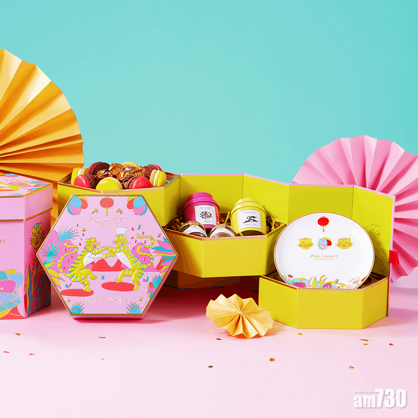 Paul Lafayet的禮盒以粉紅色為主,六角形禮盒設計成3層,一打開就見到Paul Lafayet獨創的Cookiron及朱古力。第二層有茶葉及蜂蜜,最特別就是底層的别注版雙虎骨瓷碟,非常值得收藏!