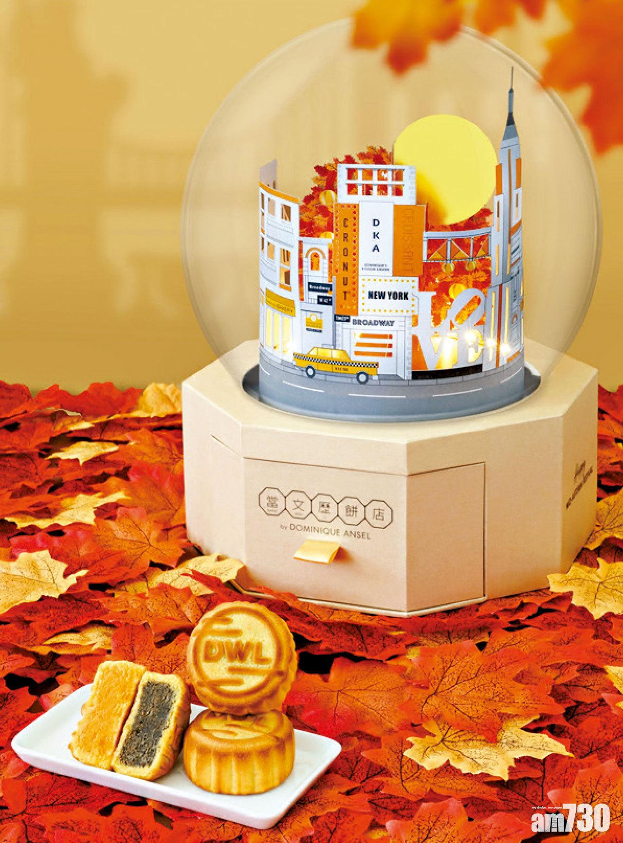 ■當文歷餅店by Dominique Ansel繼去年推出可自製曲奇的小兔整餅立體月餅禮盒,今年同樣推出立體造型的「乘月到紐約月餅禮盒」,並化身水晶球,展示多個紐約名勝剪影,按下燈掣更可照亮紐約市的夜空,值得收藏。除了去年大受食客讚賞的手工伯爵茶奶黃月餅,今次更推出經典奶黃月餅,兩款口味共6件,滋味成雙。禮盒禮券現已在網站及門市發售。於8月16日前購買,更可享預售價$458(原價$498)。訂購│www.DangWenLi.com