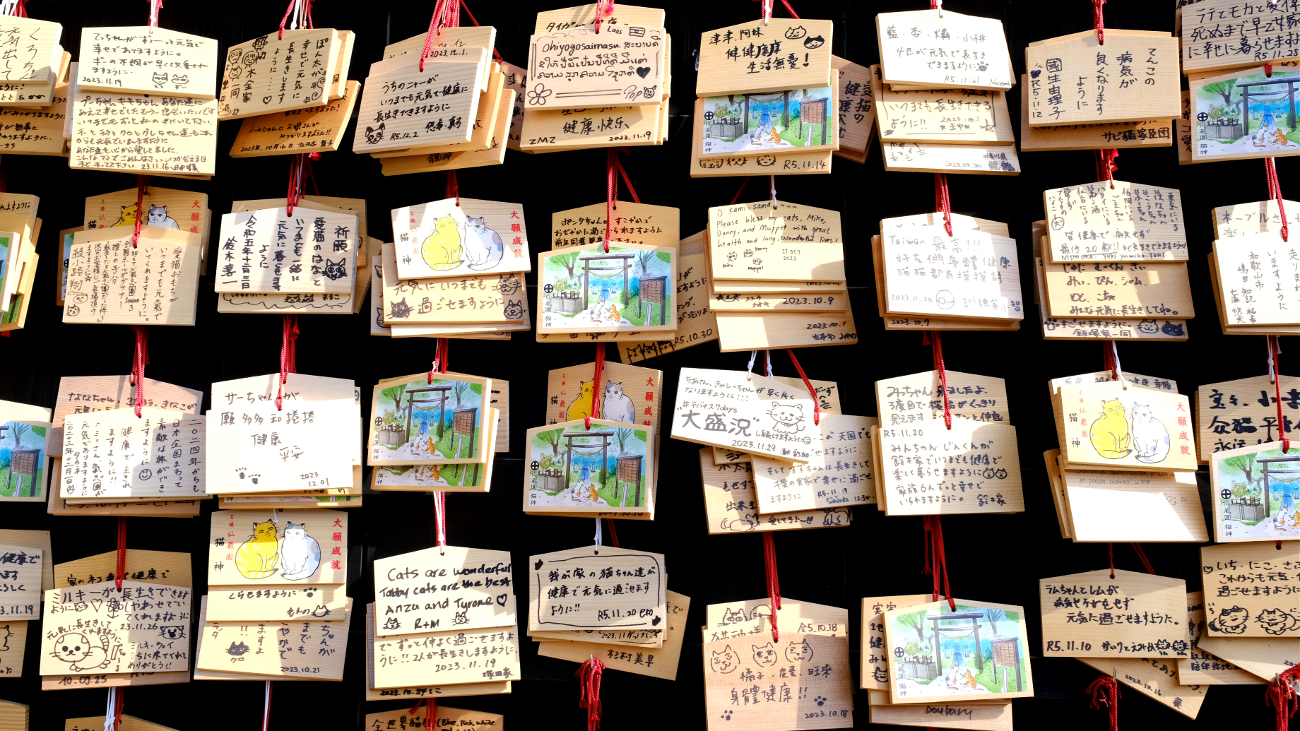 貓神神社是由17代藩主島津義弘所建,據說當年他在出征朝鮮時攜同七隻貓,用貓的瞳孔來判斷時間的變化,但最後只有兩隻平安歸來,於是他便興建了這座貓神社神社,不少貓奴都特意前來祈求家中主子平安健康,神社旁邊有間專賣貓貓紀念品的商店,可以買到這裡限定的貓繪馬。