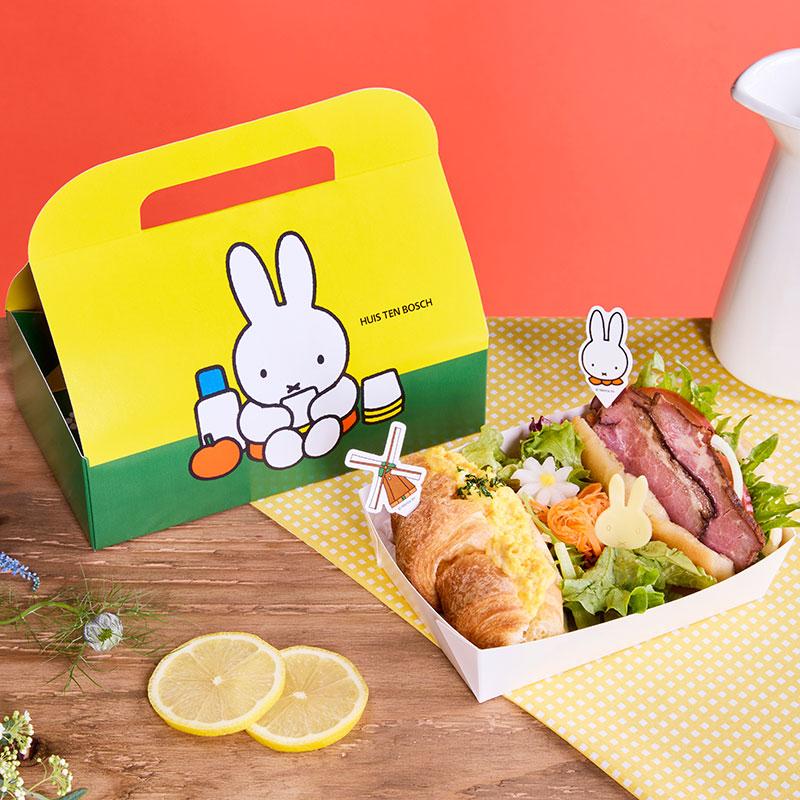 以Miffy假日野餐為主題的外帶咖啡館,提供兩種口味三明治:長崎佐世保名物檸檬牛排口味與雞蛋口味,兩款均裝在獨家設計的原創盒子中。