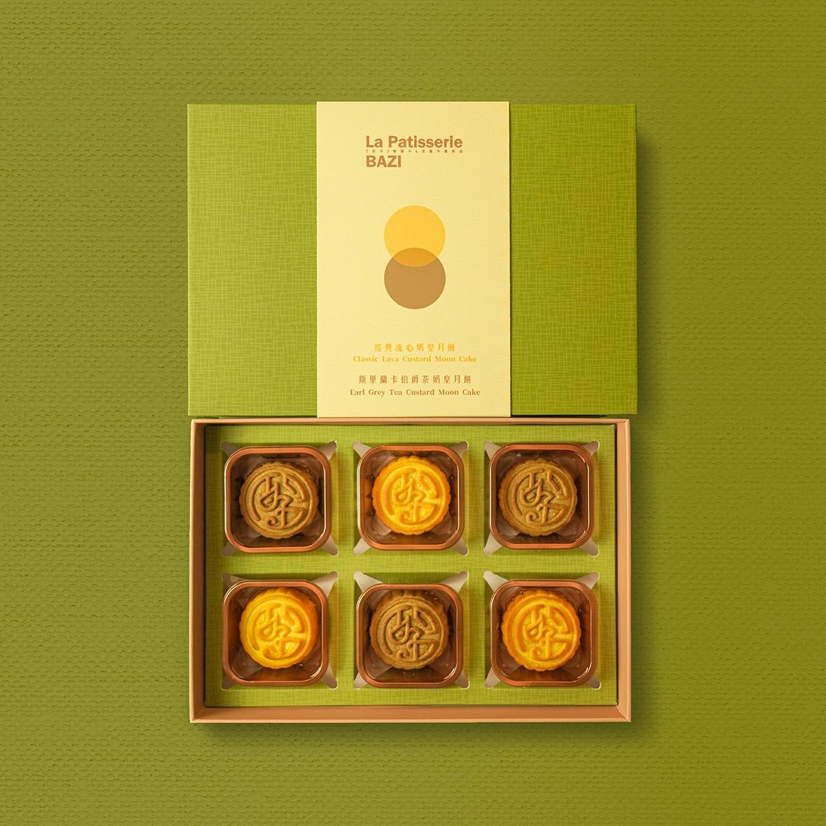 本地糕餅品牌「百子」燒菓子 & 洋菓子 專売店,今個中秋推出全新月餅禮盒,分別有流心奶皇月餅及伯爵茶奶皇月餅各 3 件,並以翠綠色禮盒作為包裝。『百子』自家研製的經典流心奶皇月餅,以金黃酥鬆的牛油餅皮,包裹着絲滑濃郁的奶黃內餡,以及油滑而帶沙質的的鹹蛋黃,叫人一試著迷。 伯爵茶奶黃月餅,精選斯里蘭卡出品的伯爵茶葉,將茶香巧妙地融合於奶黃內餡及牛油曲奇皮之中,入口富雅致的伯爵茶香,餘韻透出淡淡的佛手柑香,將中西口味完美結合。