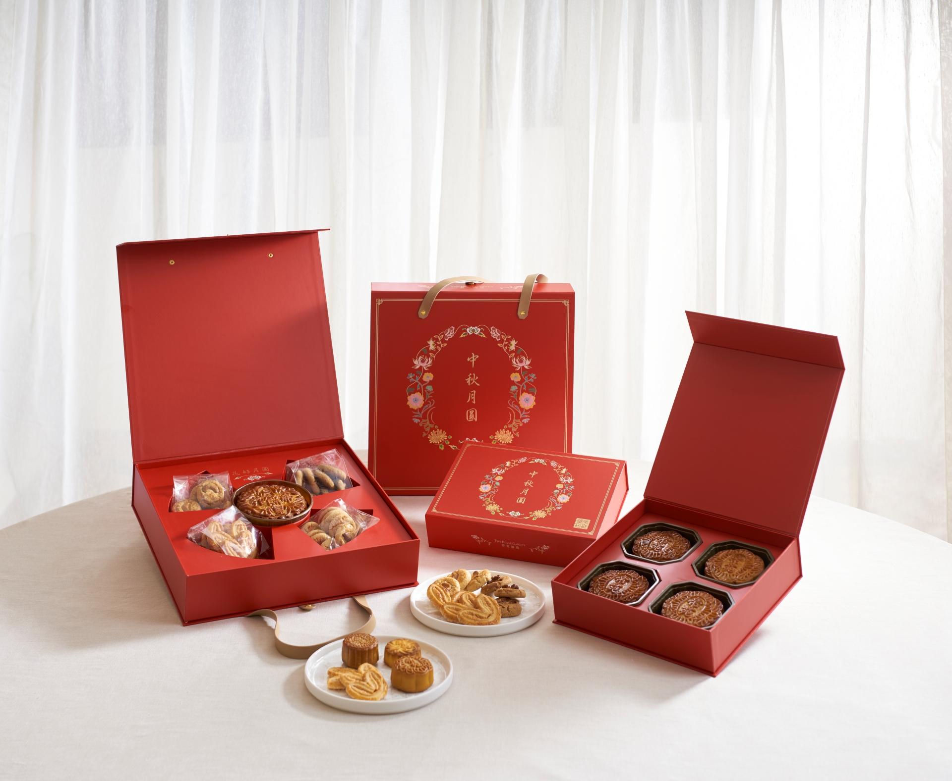 今年帝苑酒店的兩層首飾月餅禮盒,以紅色及月圓燙金圖案為主,華麗精美。此外為客人準備了各款傳統及特色月餅、精美禮物籃、月餅禮券及全新「五福禮盒」。今年亦全新推出「迷你奶皇雜錦月餅禮盒」及「迷你七星伴月禮盒」,送禮自用皆怡。9月4日或之前訂購可享早鳥優惠。