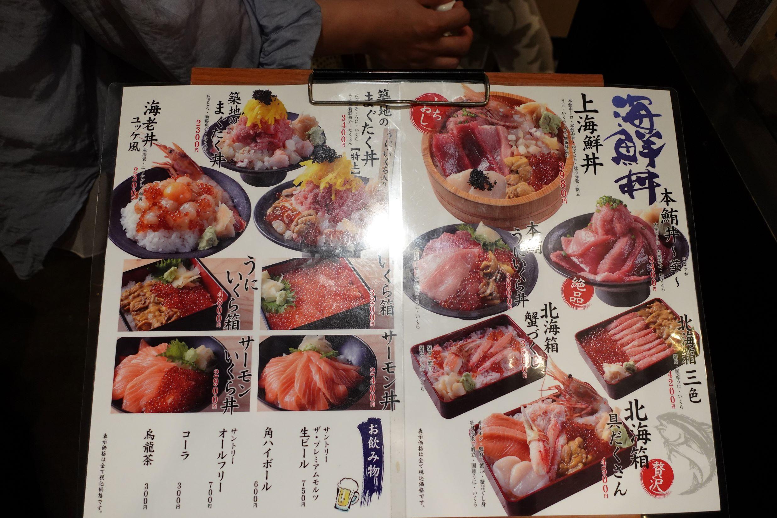 築地市場入面有近17間專食丼飯的餐廳,間間都大排長龍,今次推介的這間就隱身在一條小巷之中,不細心留意就很容易會錯過。店舖每天早上8時開店,營業至下午3時,所以一大早已經有不少人在門口排隊等位。最有名氣的是用竹盤載住的上海鮮丼(3980日圓),入面有齊三款吞拿魚部位,另有海膽、三文魚子、虎蝦、帆立貝以及雜綿魚生,賣相和圖片100%相似,海鮮全部新鮮又高質!另外如果喜歡吃三文魚的話,一於試試吞拿魚丼(3400日圓)丼飯表面舖了赤身、中拖羅和大拖羅各兩片,還有一大球吞拿魚蓉,增添口感層次。