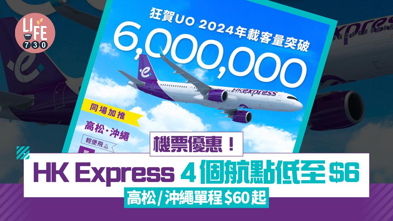為慶祝香港快運HK Express在2024年載客量超過600萬,HK Express特意推出限時機票優惠,4個航點包括花蓮、布吉單程票價低至$6!而日本高松及沖繩都有優惠,單程票價低至$60,新一年一於把握機會買平機票去旅行!