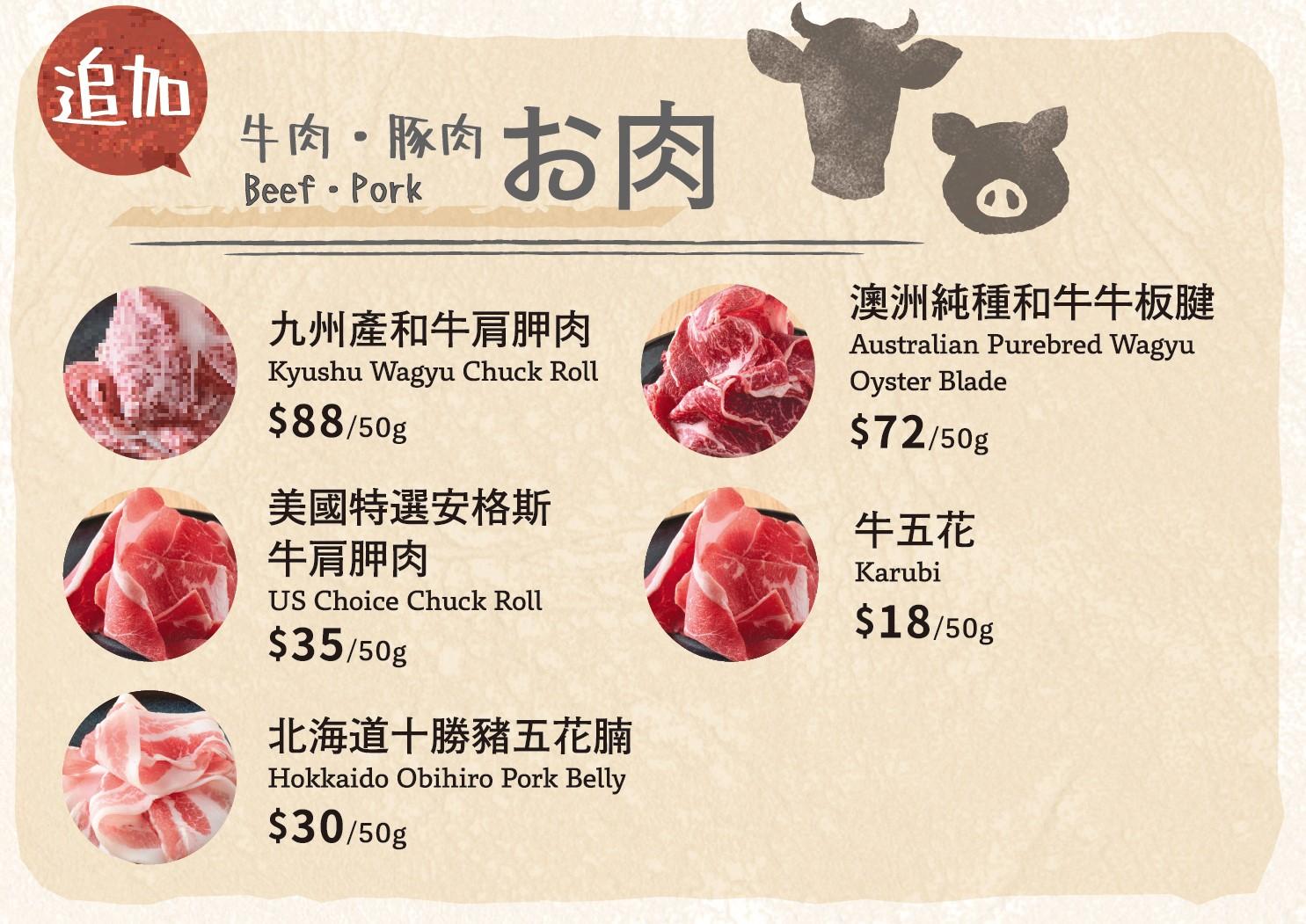 - 牛五花 & 豬肉眼套餐(200g) 優惠價:$68(原價:$82)