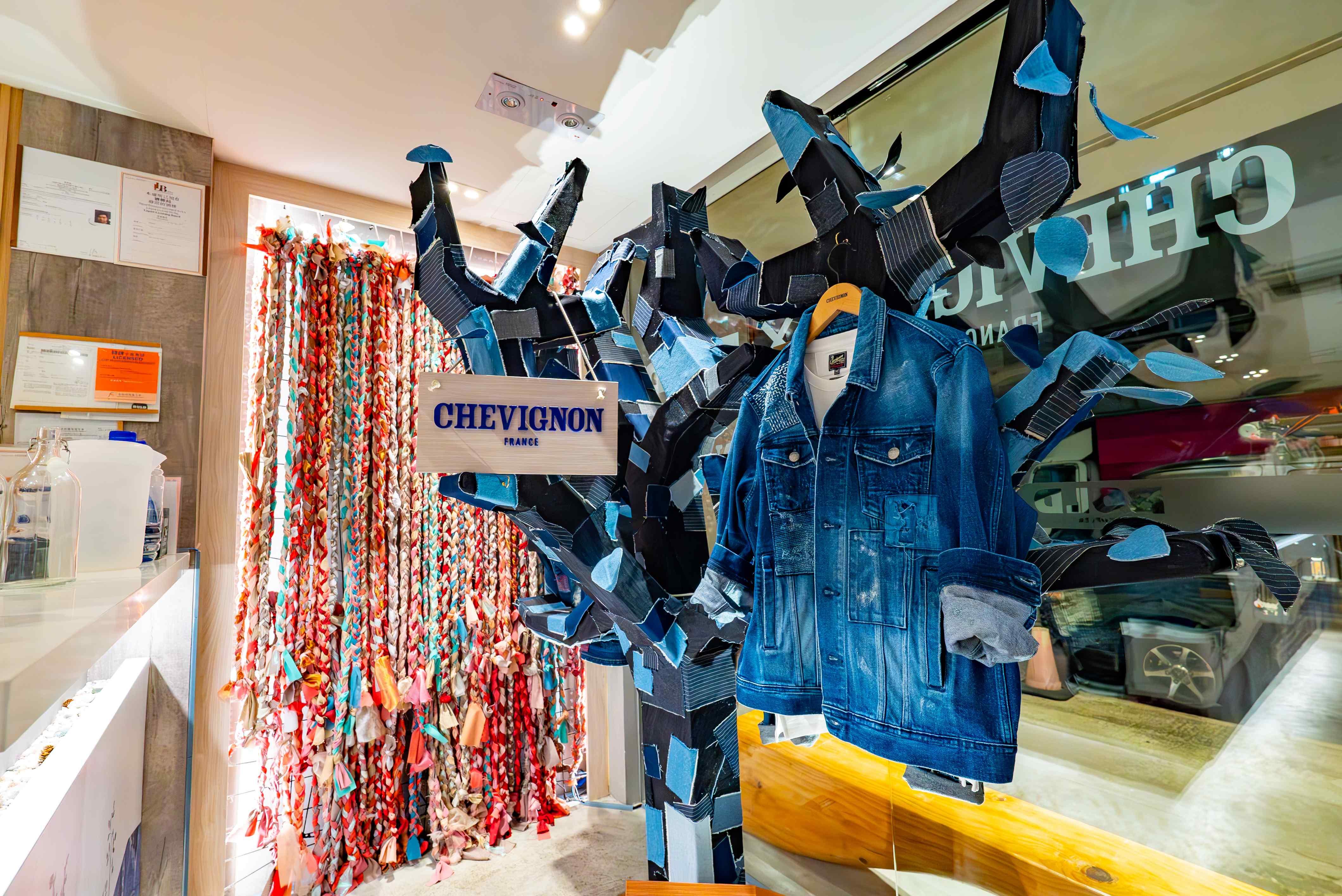 BOLD COFFEE 店內更設樹型藝術裝置展示 Chevignon x Whoval 的聯乘系列,讓牛仔迷及 café 愛好者先睹為快!「Denim Reborn」以牛仔布樹作為重生的象徵,強調本次聯乘系列以日本匠人拼布(ぼろ)及刺子繡(刺し子)工藝為平日剩餘的牛仔布庫存注入新生命,註解經典新生,寓意新年全新出發。