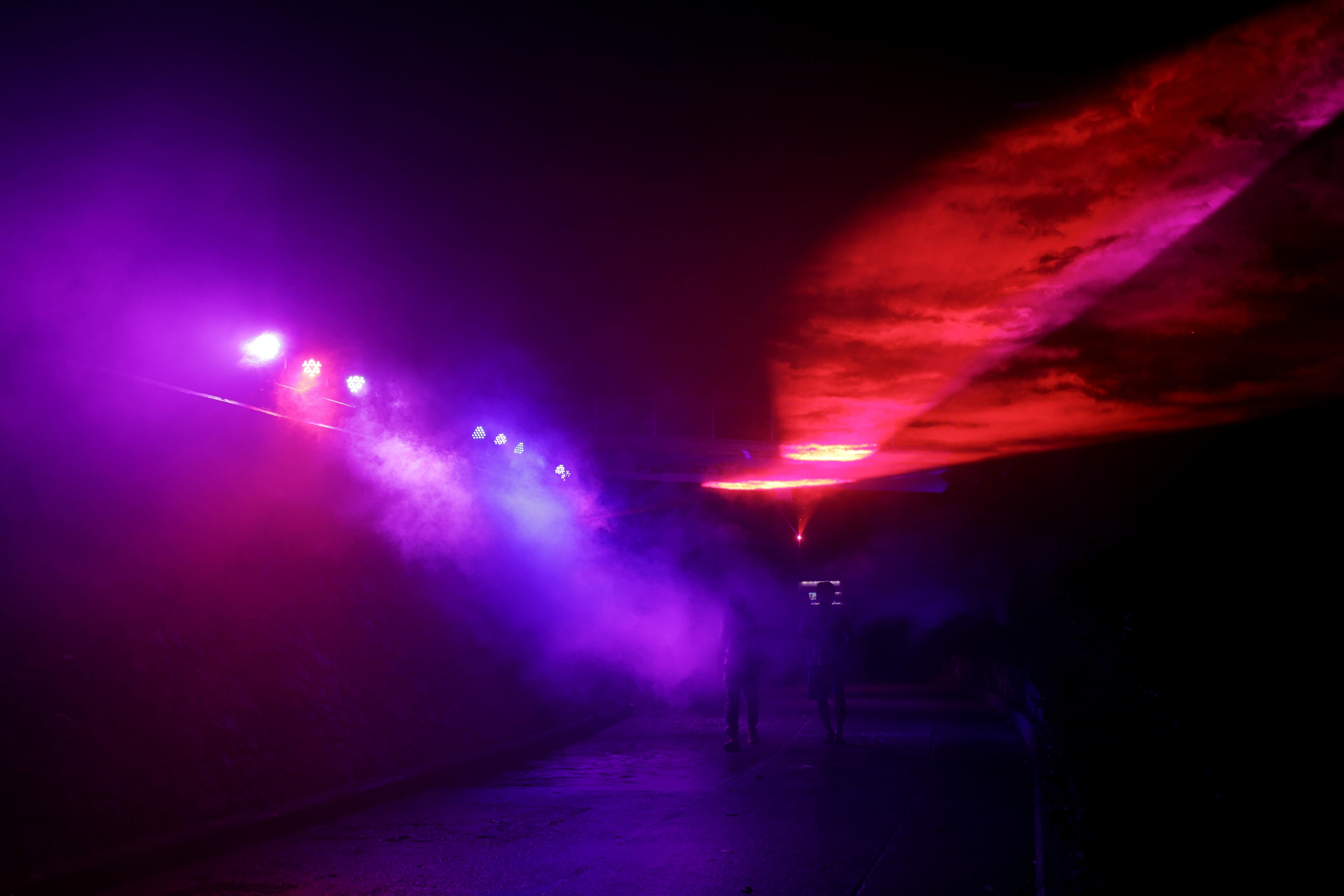 海洋公園為哈囉喂設置多個打卡位,包括在城寨詭域旁搭起的「城寨大戲棚」及「詭魅光影大道」。煙霧配上奇幻光影效果,猶如身處詭魅的幻境世界。記者不時哈囉喂嘩鬼出籠突襲,火花四濺的滑步秘技嚇人一驚。