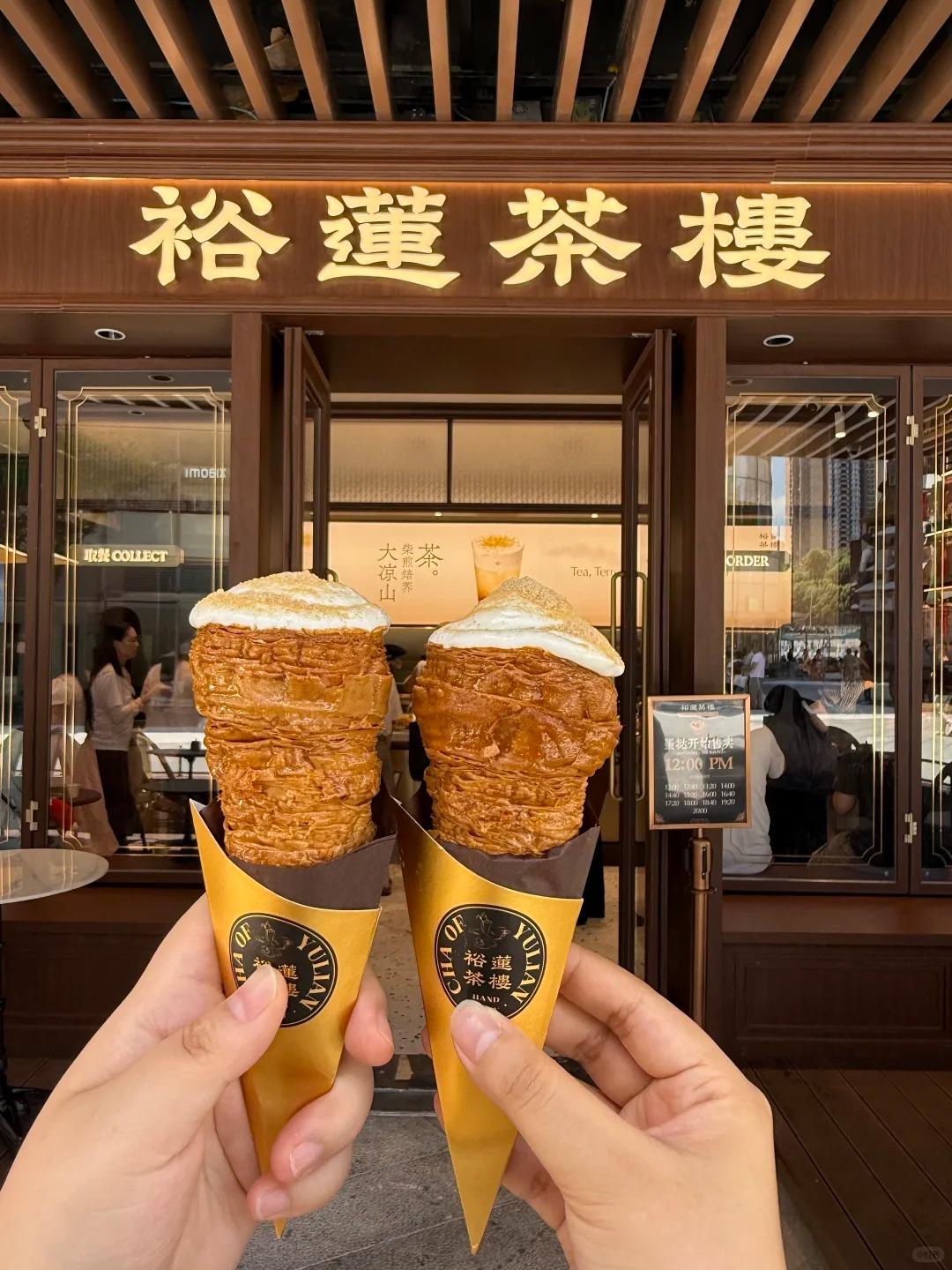 裕蓮茶樓以懷舊中式風格為店舖設計,復古裝修打卡一流。品牌最近新推出「大涼山蕎麥茶系列」,柴煎焙蕎麥搭配蕎麥奶蓋、蕎麥脆與荞麥粒,散發濃郁烘焙谷物香,口感層次豐富。甜品同樣出色,招牌「裕蓮爆品蛋撻」外皮酥脆掉渣,內餡蛋香奶香濃郁;「生奶油麻薯號角」以焦糖外殼包裹生奶油與豆沙,撒上黃豆粉,甜而不膩,令人垂涎!