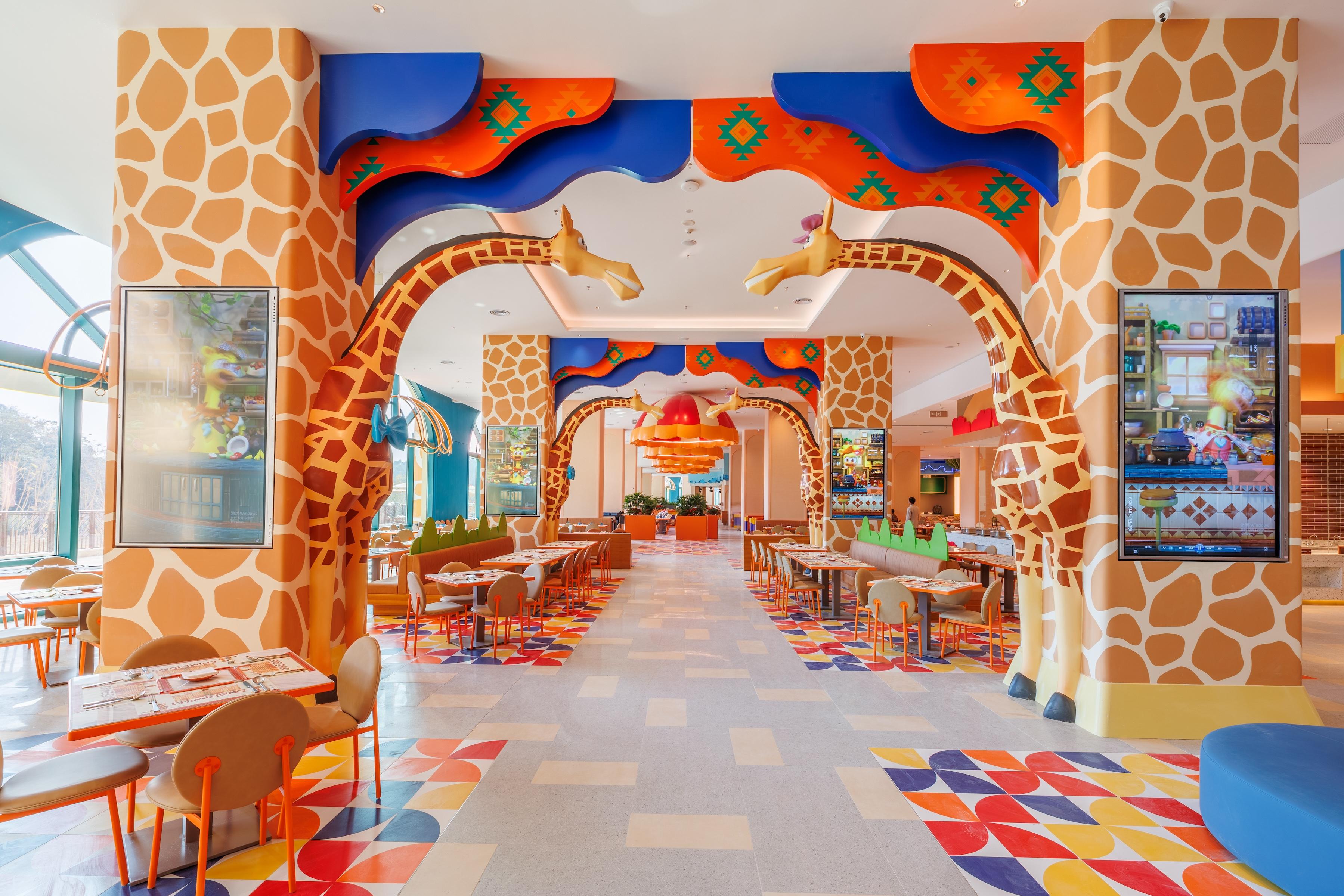 城堡自助餐廳位於清遠長隆長頸鹿城堡酒店中,是長隆首創、長頸鹿主題沉浸式多國籍料理餐廳,東南亞系、日系、傳統中式、嶺南風味一應俱全。全日制供應數百種中西風味美食,國際團隊更打造「長頸鹿奇幻劇場」動雕表演,提供兒童互動遊玩區。每位持成人(標準票)賓客可攜帶一位用餐當日未滿3 歲或身高未達1 米的兒童免費用餐。