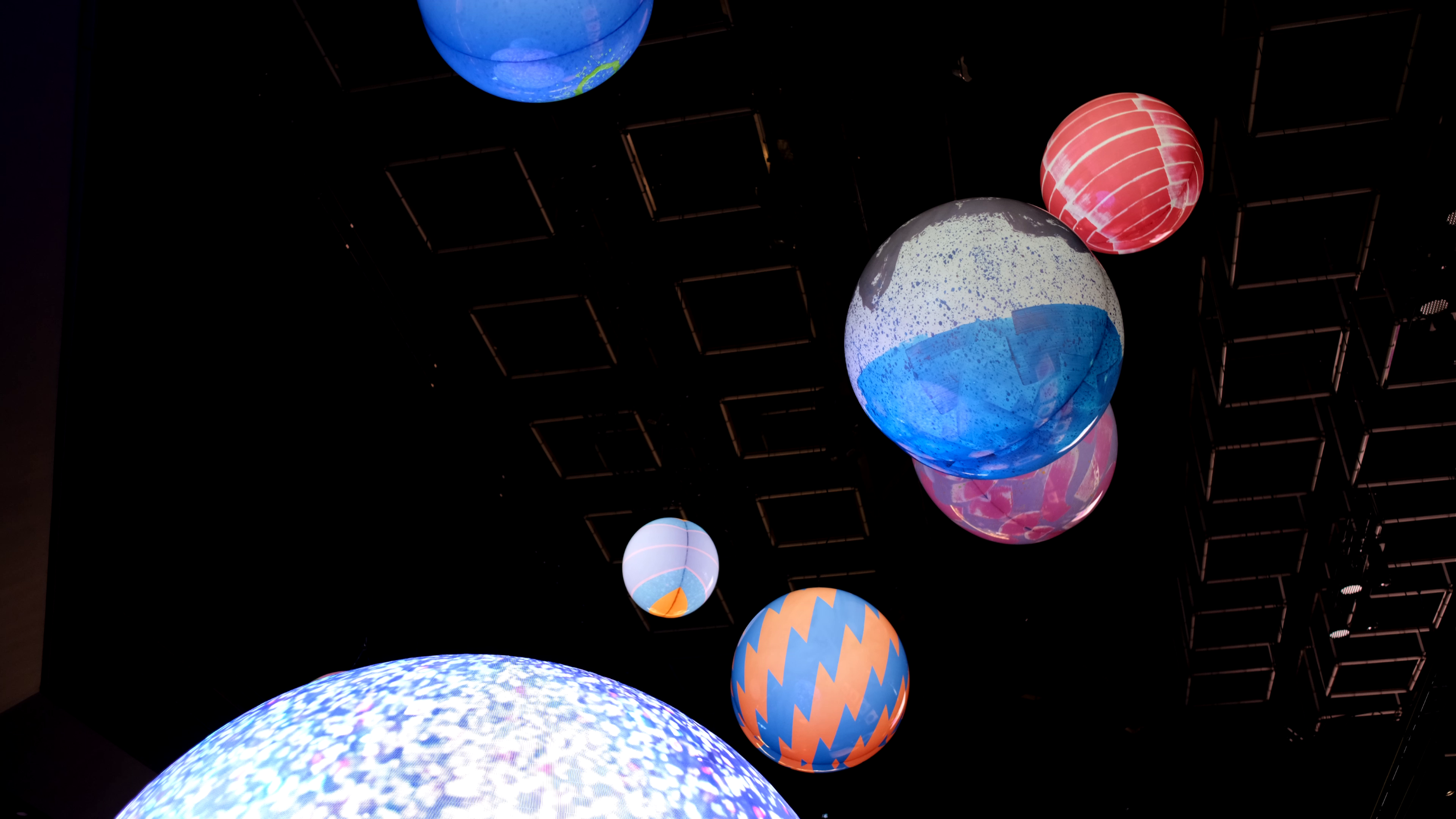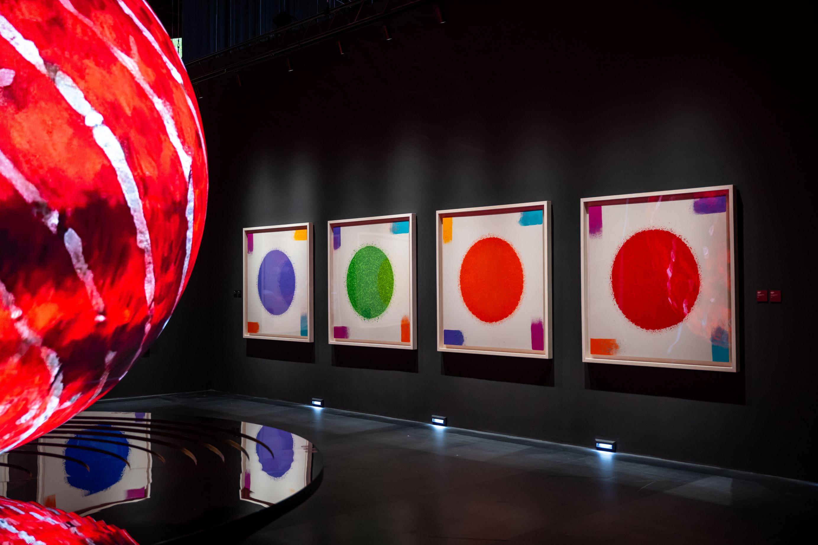 《超元•萬象:蕭勤的藝術》藝術展先以展區「生命之圓」開場,策展人將直徑3.5米的LED光球與7顆星球組成「蕭勤的太空船艙」,並且呈現蕭勤在1961至1963年龐圖時期的代表作品,及其在歐洲所組織舉辦的「龐圖」藝術展覽。而「宇宙精神之旅」是蕭勤與香港著名科技水墨藝術家黃宏達的首度跨界合作,兩組數字裝置作品「天鏡」與「無限」,融匯藝術與創新科技,在「天鏡」沉浸式展示中,蕭勤的作品以數字化的形式投影成不同的「行星」,象徵著一個精神宇宙,呼應展覽主題。來到「炁之源」展區,觀眾可以親身參與藝術作品,通過互動式數字裝置探索蕭勤藝術中能量的形式和文化。