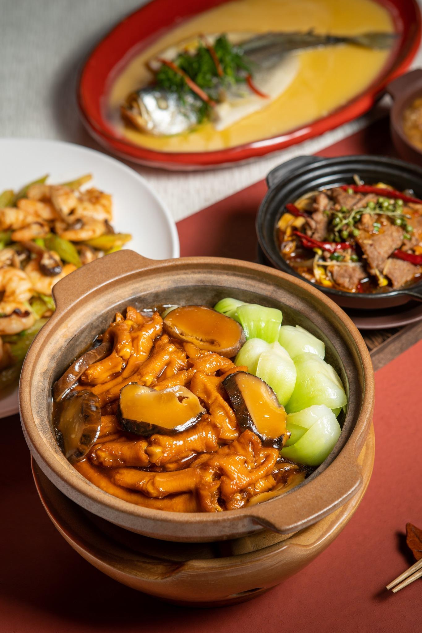 傳統豚肉叉燒、澳門燒腩仔、極品豉油雞、瑙柱貴妃雞、蜜汁燒肉排、馬拉盏乾煸菜花、農家小炒肉、糖醋小肉排、經典梅菜扣肉、冰鎮咕噜肉、魚香茄子煲、欖菜肉碎四季豆、金銀蛋浸冬瓜條、滑蛋炒叉燒、X0 醬西芹百合炒吊片、豉油皇焗海蝦、京蔥爆竿柳、水煮牛肉、涼瓜菜脯煎蛋、蟲草花冬菇蒸雞