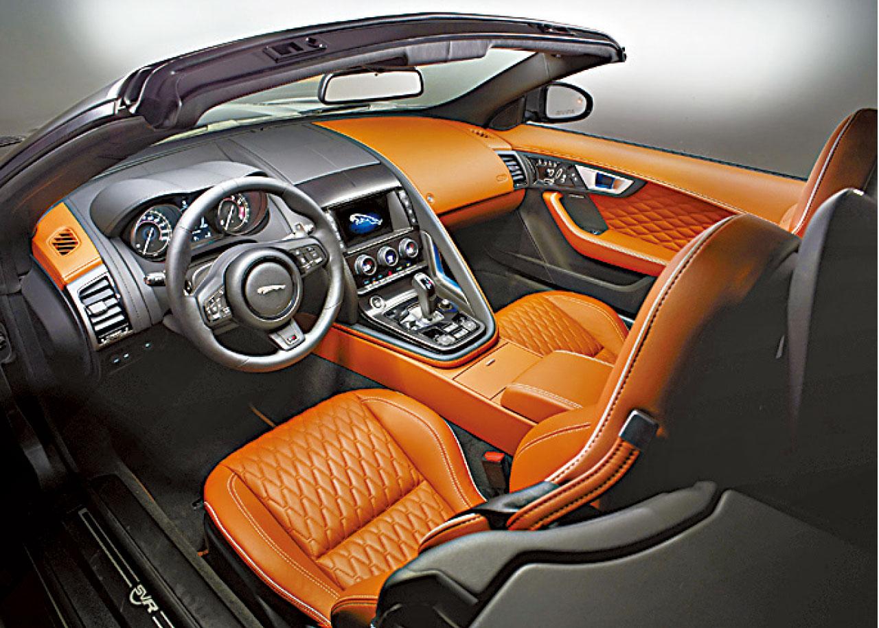 車身經過全面強化,F-Type SVR的車廂亦經過修飾,中控台、軚盤、門板和座椅都用上頂級皮革製成,而且三幅式跑車軚盤加入了SVR標誌,令人跳進駕駛席便會知道這是非一般的F-Type。