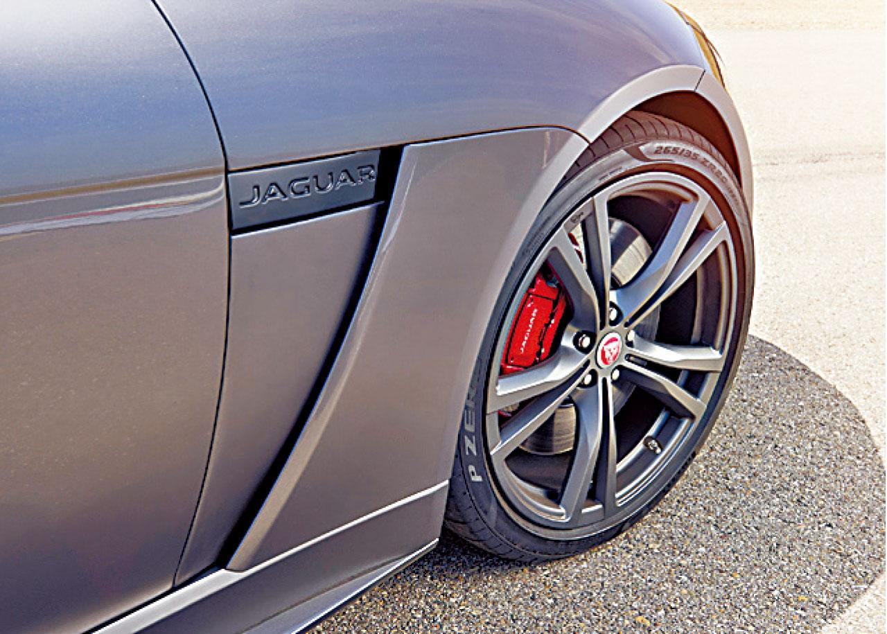 根據廠方表示,新尾翼在時速100km/h時會自動升起,為車身減少風阻和提升下壓力,同時首次應用鈦合金混合鉻鎳鐵的四出式死氣喉,不但設有可變閥門裝置,而且重量還較傳統不銹鋼製品輕16kg,連同四輪20吋鍛造合金軨,令F-Type SVR的總重量下降25kg至1,720kg。