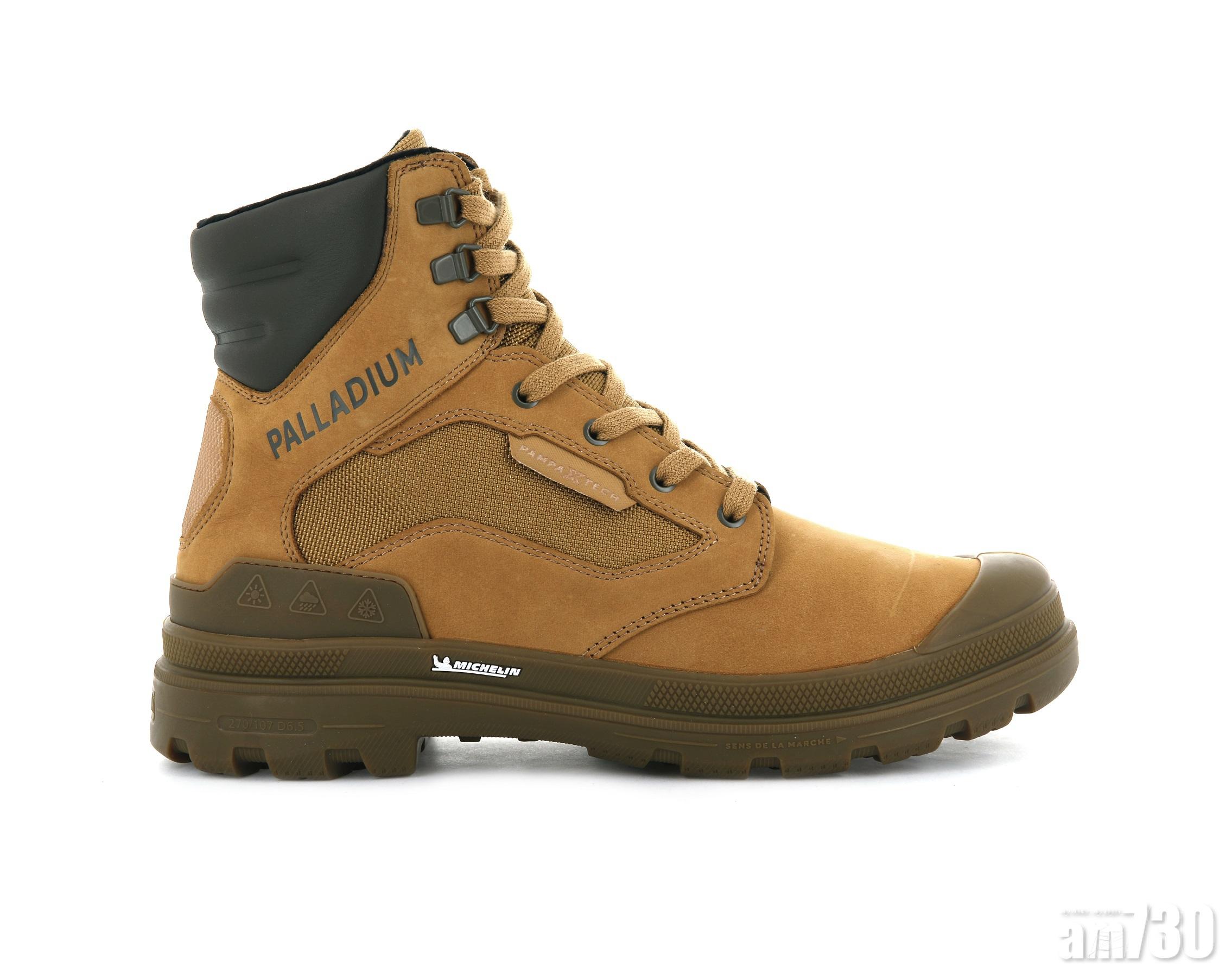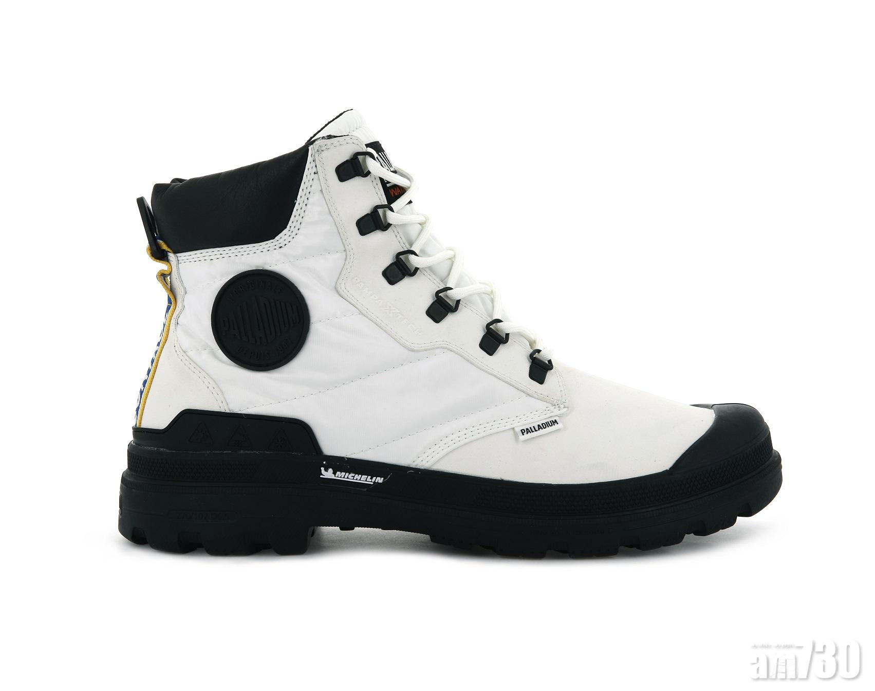 來自法國里昂的著名軍靴廠牌PALLADIUM,今個秋冬跟輪胎品牌米芝蓮MICHELIN聯乘合推「PAMPA X TECH──All Weather 全天候概念系列」,將車胎獨特V字形胎紋、3D花紋槽設計與橡膠複合材質,結合PALLADIUM防水科技,再次引起fans搶購。(查詢:2817 0155)
