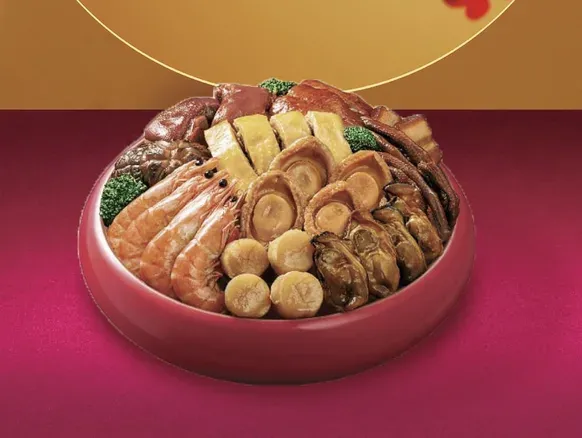 今年美心MX推出「四喜鮑魚盆菜」($538/四位用,原價$818),食材包括原隻蠔皇鮑魚、原粒元貝、蠔豉、豉油皇蝦等精美食材各四件,配搭其他豐富食材,營造份量合適、層次豐富的小型盛宴,為小家庭聚會做足溫馨準備。