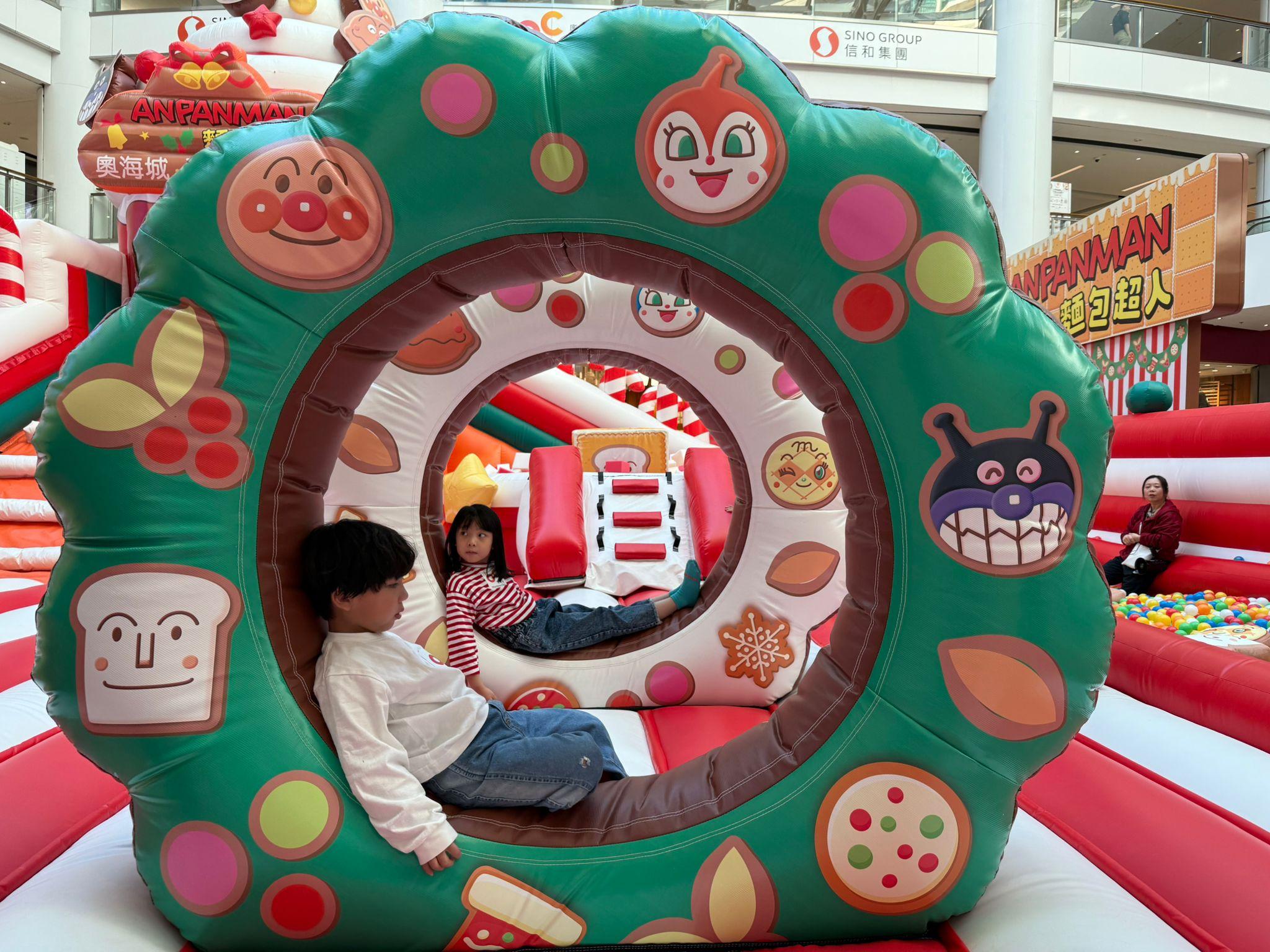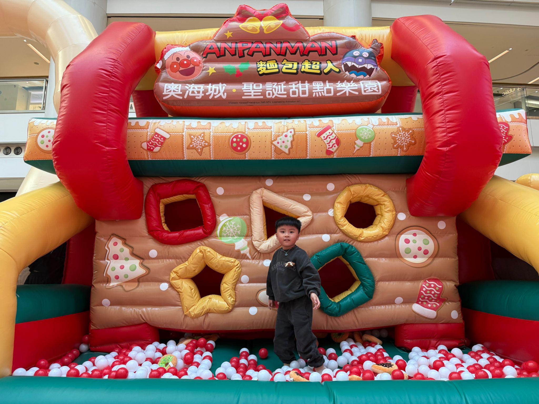 「麵包超人‧奧海城 聖誕甜點樂園」主要劃分為3大區域,當中6米高的麵包超人跳彈床必定讓大小粉絲們尖叫。麵包超人不但打卡able,更是「玩得」,原來麵包超人內部是1張跳彈床,小朋友可進入麵包超人內部盡情彈跳。