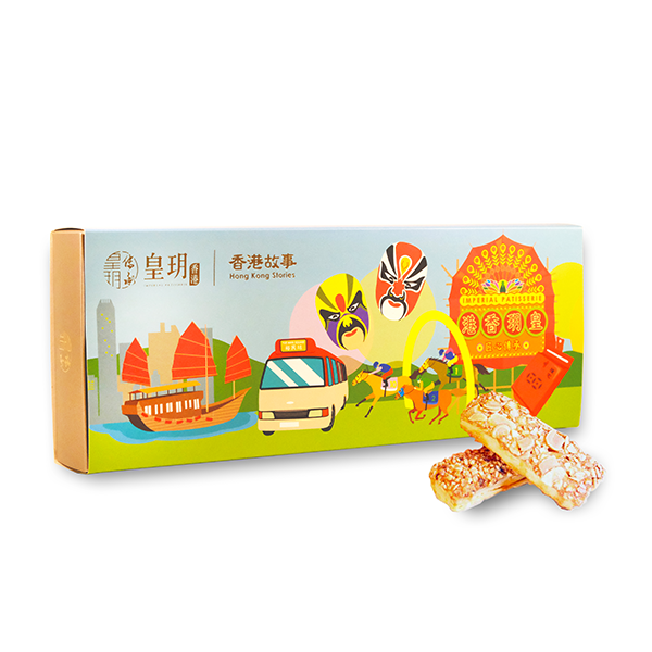 今次新推出的「全新香港故事系列」,單是禮盒包裝已經相當有特色,由皇玥的設計團隊精心親手繪製,畫上10 大最受旅客歡迎的代表性建築和文化特色 : 維港帆船、雙層巴士、電車叮叮、懷舊招牌、雪糕車等,再配上香港著名的地標建築物,如大佛、會展、中環街市等。另外,紙盒的設計可以連成一線,更能拼湊出一幅滿載香港昔日情懷的「全景圖」。