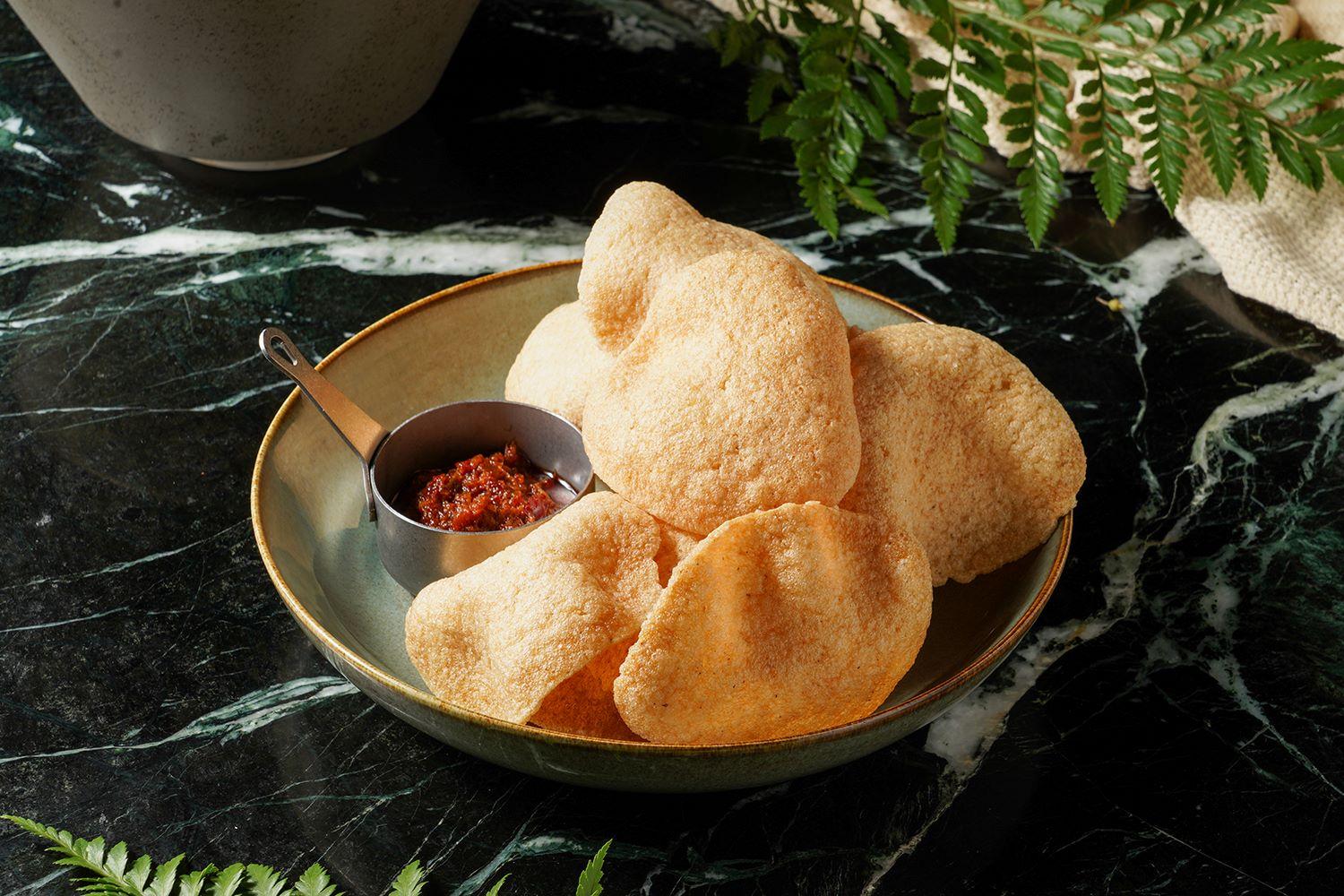 若想要跟他人一同分享,也有多款選擇,如手工炸蝦片配自製冬蔭功 XO 醬,蝦片每日新鮮油炸,酥脆十足同時帶有香濃蝦味,配上香辣的冬蔭功醬,無論是作為小食或是前菜都是一流;麥皮虎蝦精選肉質鮮甜蝦味重的虎蝦,以麥皮代替麵包糠包裹,炸出來的外皮更有咬口而帶麥皮香,蝦肉熱辣彈牙。若想來點肉食,那定要點一份檸檬葉烤雞,以南薑、香茅、檸檬葉等香料醃製半日後再烤焗,成品鮮嫩多汁,帶有酸酸甜甜的味道。
