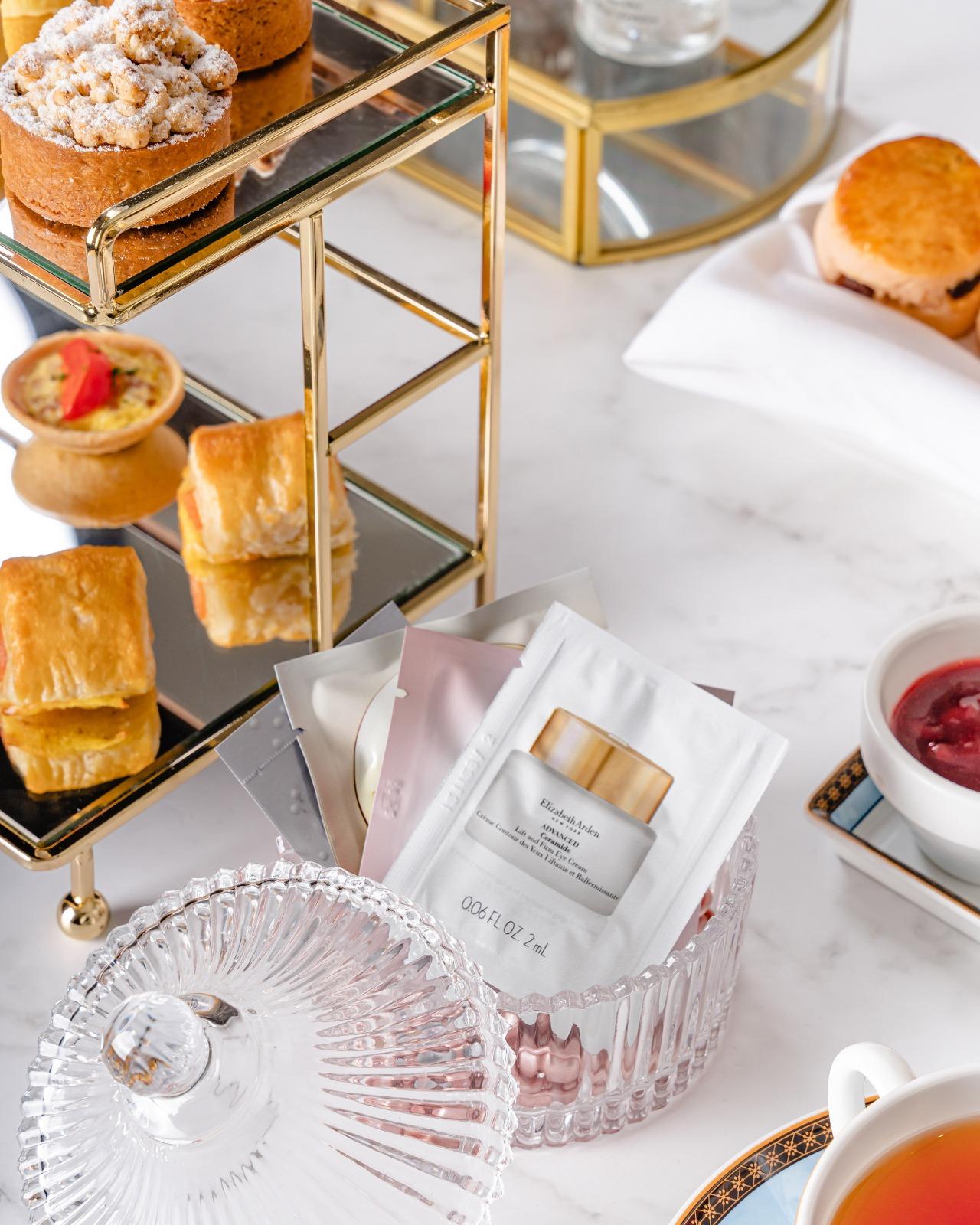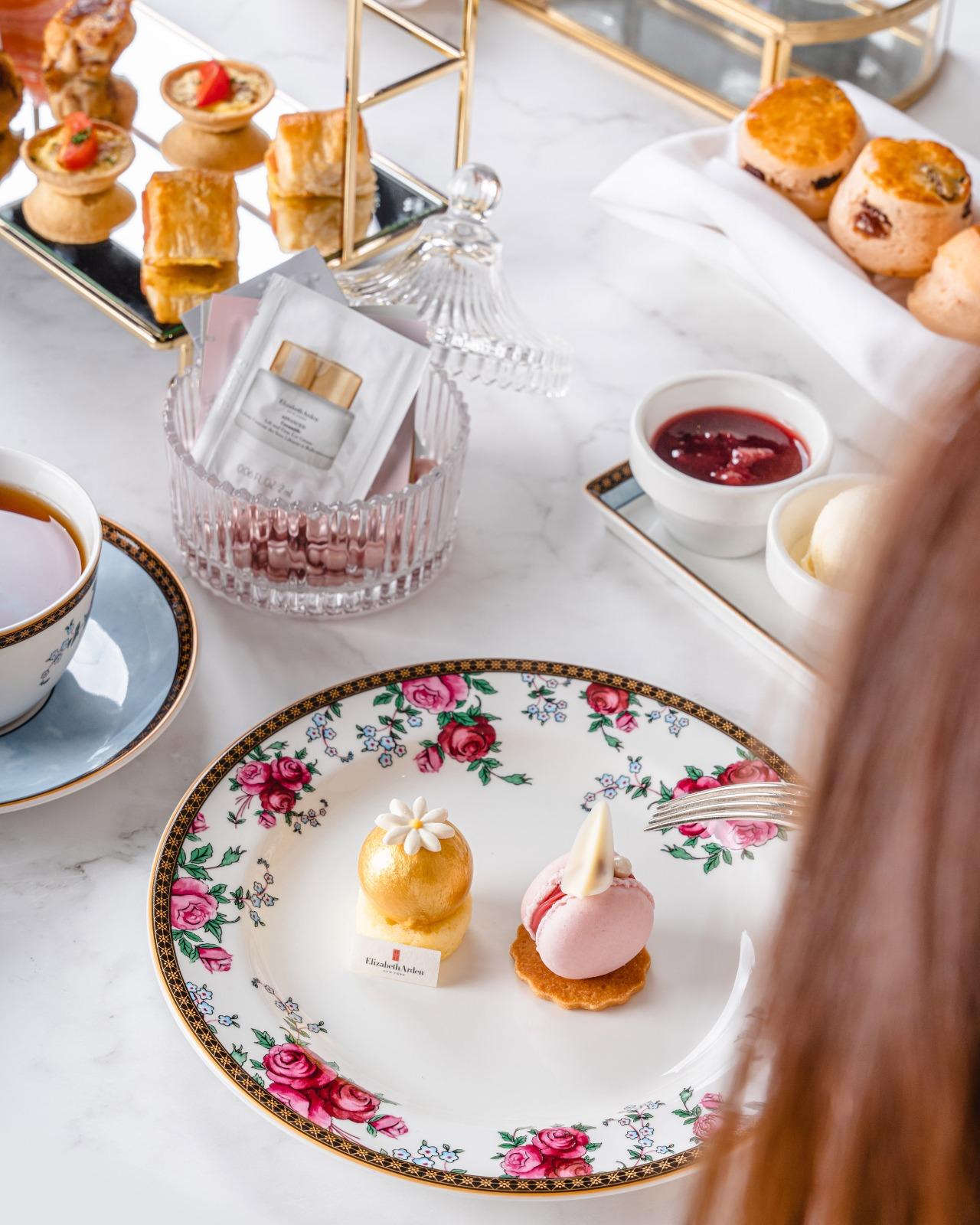 由廷廊與紐約Elizabeth Arden合作推出的Stay Fabulous下午茶很有驚喜,廚師將食物的美味與Elizabeth Arden的奢華結合,演繹在簡約的兩層架上,上面放滿豐富的鹹甜小點。下午茶定價每位$398、兩位$698,客人亦可加錢升級至Saicho氣泡茶及Taittinger香檳。每份下午茶會贈送Elizabeth Arden禮品,裡面包括皇牌膠囊精華、眼霜及護膚精華等,可說是最好的婦女節禮物。