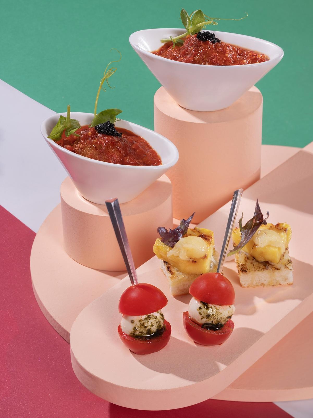 在和煦的陽光下欣賞頂層270度落地玻璃窗外景致,配上三層架上的意式美味下午茶:5款甜品及5款鹹點,當中包括巴馬臣芝士英式鬆餅、帕爾瑪火腿配日本蜜瓜、意式牛肉丸配黑松露油、意大利芝士蛋糕、意大利檸檬芝士撻、濃縮咖啡忌廉配意大利曲奇等,享受悠然午後時光之餘,滿足女士的甜品胃。