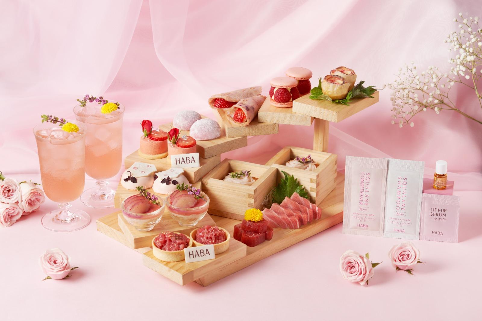 沙田帝都酒店聯乘日本北海道護膚品牌HABA呈獻春若繁花下午茶體驗,以品牌玫瑰元素為下午茶的創作靈感,炮製3鹹4甜粉紅美點。凡享用下午茶,每位顧客除可免費換領HABA鯊烯美白緊緻護理體驗套裝乙份及$100購物現金券乙張,更可免費體驗全身穴位指壓按摩或Vlift8微波炫金活顏緊緻面部護理療程(總值高達$2,525),最適合「肌渴」女生。