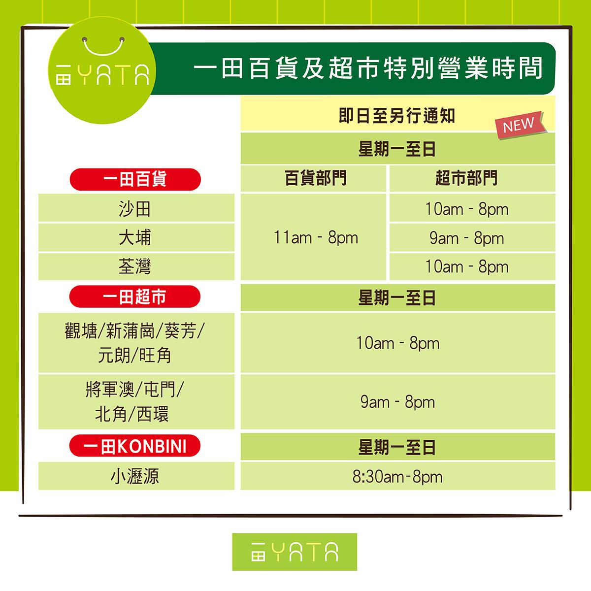 - 一田KONBINI營業時間維持 8:30am-8pm