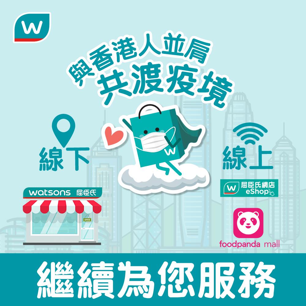 另外,由於網店物流情況嚴峻及人手非常緊絀,即日至3月16日的送貨上門服務會有所延遲,屈臣氏會於出貨前經SMS通知更新時間。
