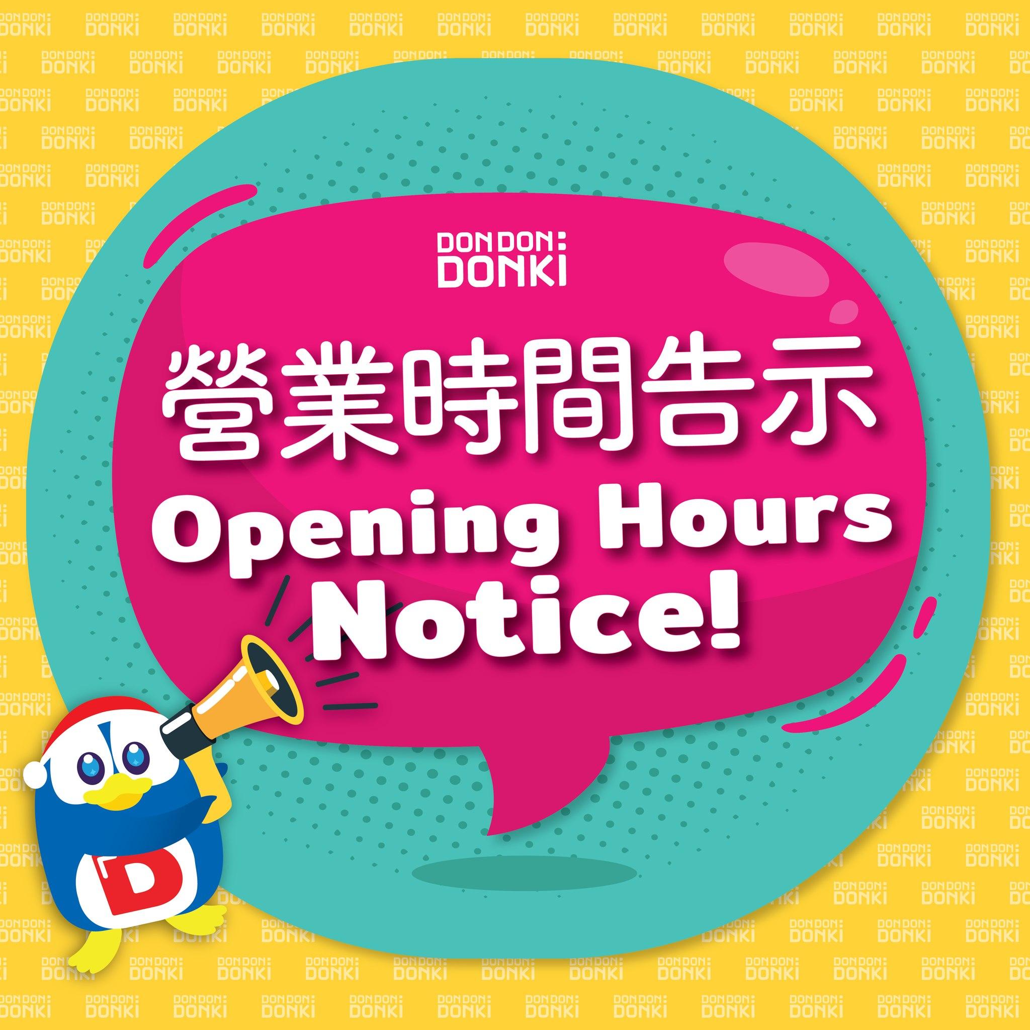DON DON DONKI近日有部分分店因有員工初步確診,因而暫停營業,但目前全線分店(除山頂店)營業時間已恢復正常。而九龍灣淘大商場店因停電關係,將於3月4日凌晨12時至早上9時暫停營業。