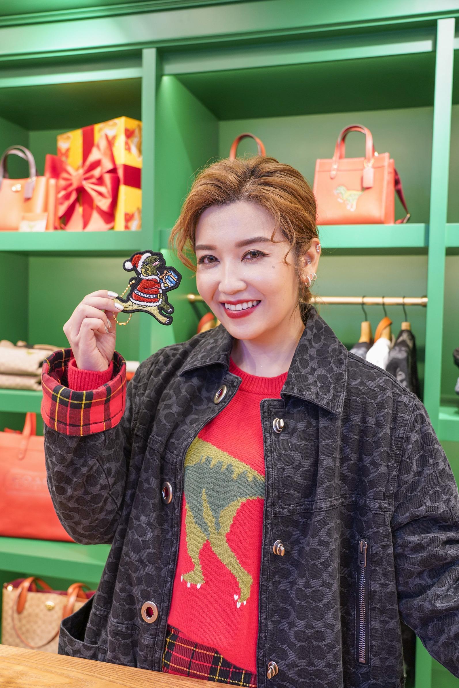 Jeffrey穿上品牌經典的Rexy恐龍圖案的T恤和針織衫,Rexy更以節日造型現身,外搭的滑雪系列SHEARLING外套和長褲,柔和的粉嫩色調與濃郁的大地色系碰撞,結合尼龍、棉質以及光滑皮革等等不同材質,大膽又充滿色彩。練美娟的復古學院風打扮,亦打破平日形象,她身上的濃郁紅色與棕色調格紋短裙,無論是日常穿搭或者聖誕party都可以輕易配襯。