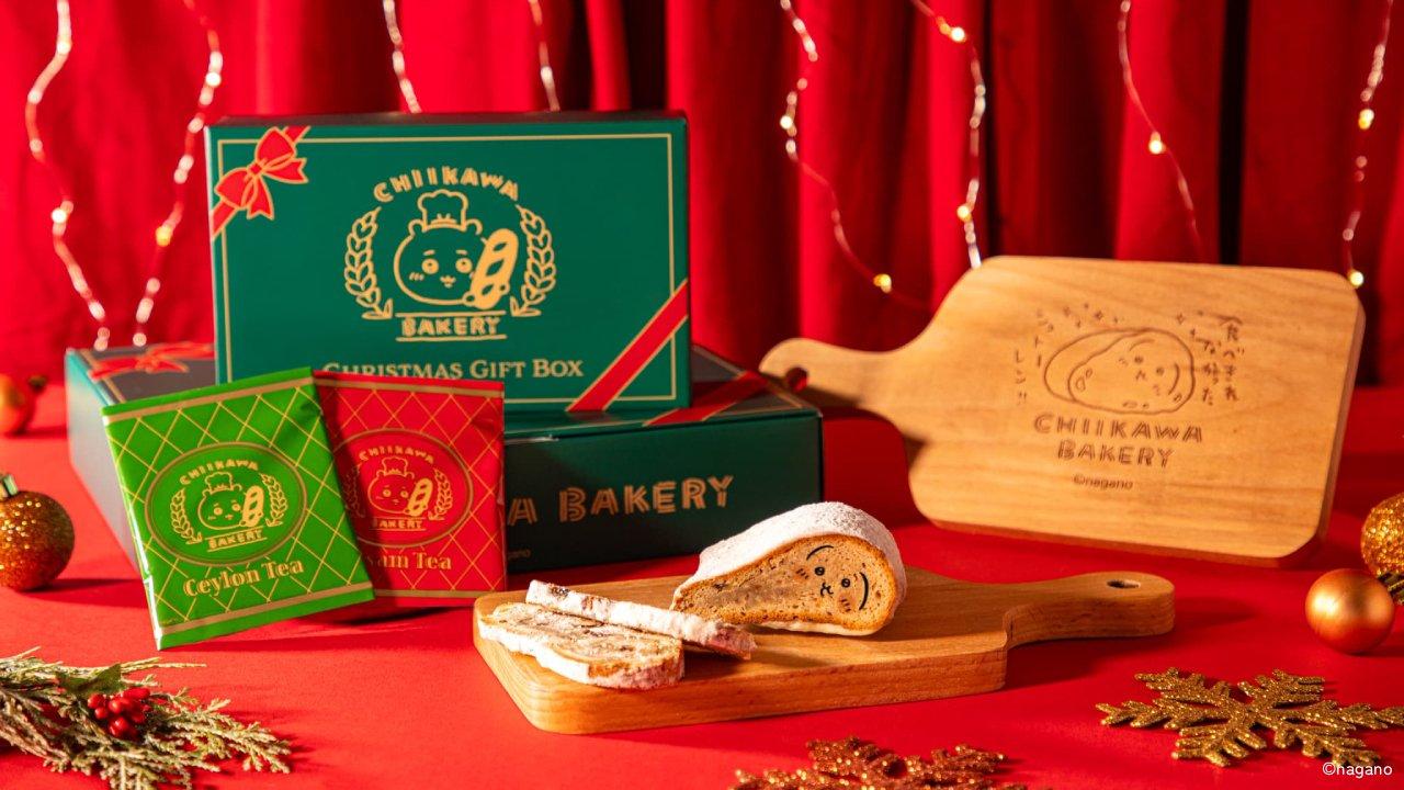 今年聖誕,Chiikawa Bakery推出兩款聖誕禮盒,分別有聖誕禮盒A及聖誕禮盒B,兩款禮盒內有阿薩姆及錫蘭紅茶茶包、精美聖誕迷你賀卡,以及兔兔造型的史多倫聖誕麵包(Stollen)!造型來自2024年的《Chiikawa》聖誕漫畫,故事中兔兔化成了超可愛的史多倫聖誕麵包!另外聖誕禮盒A更附有一塊天然木質砧板,造型精美,送給Chiikawa粉絲就最適合不過。