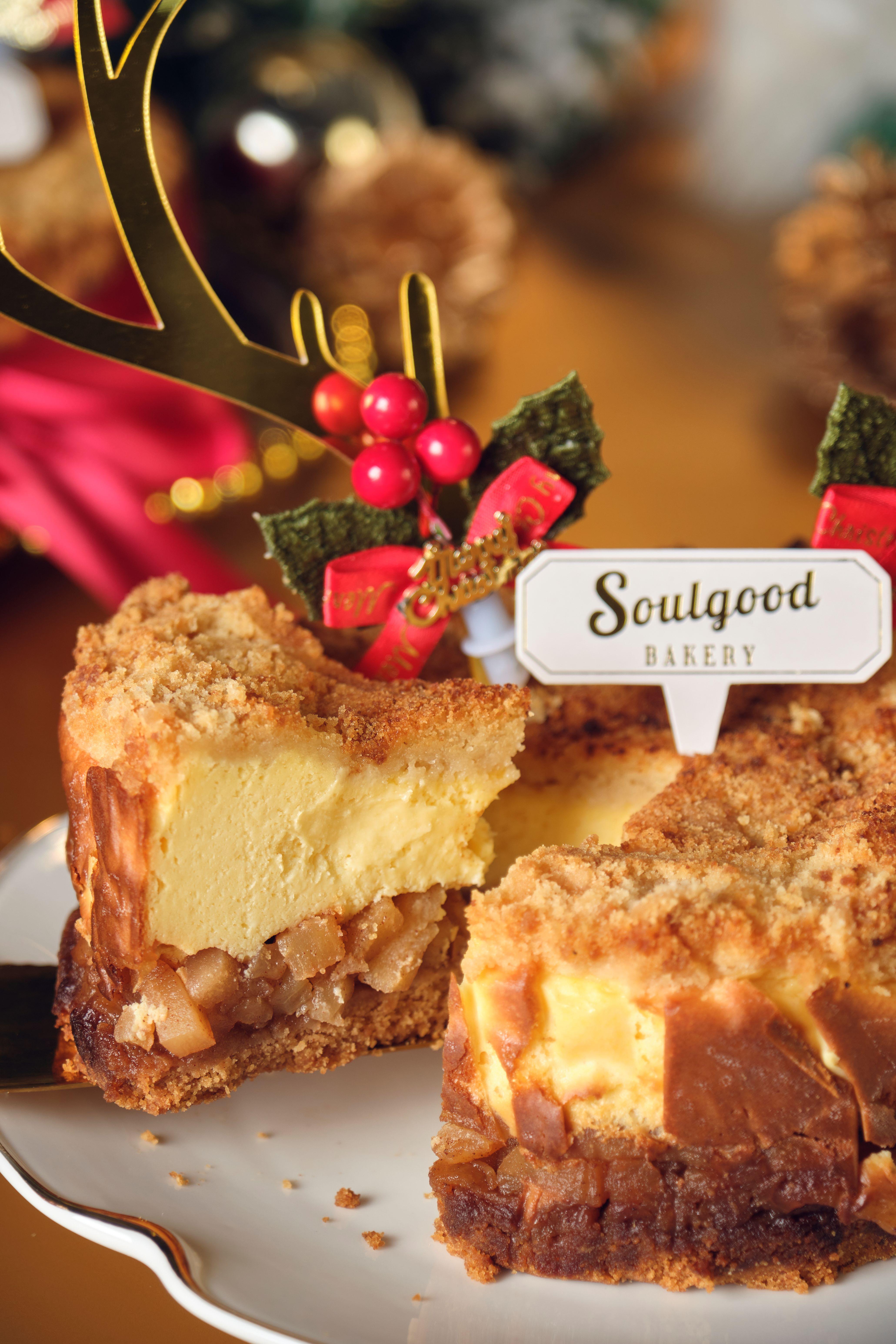 今個聖誕,一於以Soulgood Bakery的節日限定口味,增添聖誕氣氛!全新焦糖脆脆薑餅人巴斯克芝士蛋糕(6吋$580;8吋$780;4吋$180),面層飾有自家製的薑餅人,造型可愛。薑餅人以傳統食譜製作,經典的黑糖、薑味和肉桂,是不容錯過的聖誕口味。加上濃郁細滑的原味巴斯克芝士蛋糕,配上Lotus Biscoff焦糖餅乾醬及焦糖曲奇脆脆,層次豐富,甜而不膩。另一款全新節日限定口味—抹茶聖誕樹巴斯克芝士蛋糕(6吋$520;8吋$720;件裝$68),選用日本丸久小山園抹茶粉製作,茶香濃郁回甘,馥郁芳香的抹茶與香濃的芝士,絕對是完美組合。造型別緻的原味士多啤梨聖誕帽巴斯克芝士蛋糕(6吋$520;8吋$720;件裝$68),以產自美國加州的長柄士多啤梨,裝飾城聖誕帽造型,加上減糖配方的芝士蛋糕,令整體口感更輕盈。喜歡朱古力,便不要錯過特濃朱古力草莓巴斯克芝士蛋糕(4 吋$180),以法國進口的可可粉製作蛋糕,配以香氣濃郁的新鮮士多啤梨,每一口都是完美滋味。去年的聖誕限定口味—蘋果金寶巴斯克芝士蛋糕(6吋$560;8吋$760;4吋$180),今年亦再次回歸。蛋糕面層是金黃香脆的金寶脆脆,蛋糕夾心加入富士蘋果粒,加上香濃的肉桂,充滿濃厚的冬日氣氛。
