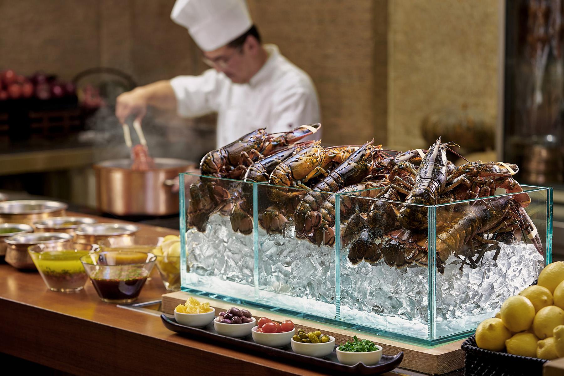 自助晚餐招牌菜式包括可持續發展波士頓龍蝦兩味 (新鮮即烚、中式或泰式烹調)、燒美國有骨肉眼扒、燒羊架、各式鐵板燒及天多利美饌等,逢星期六、日、公眾假期及前夕加推西式燒龍蝦。客人可品嚐多款採購自可持續及負責任的漁業的可持續發展冰鎮海鮮及刺身,包括拉斯加鱈場蟹腳、越南養殖海蝦、阿加拿大野生捕撈海螺、新西蘭野生捕撈青口、印尼野生捕獲黃鰭吞拿魚、自家醃製挪威養殖大西洋三文魚等,星期五至日更有加拿大野生捕獲帶子及即切油甘魚,回味無窮。