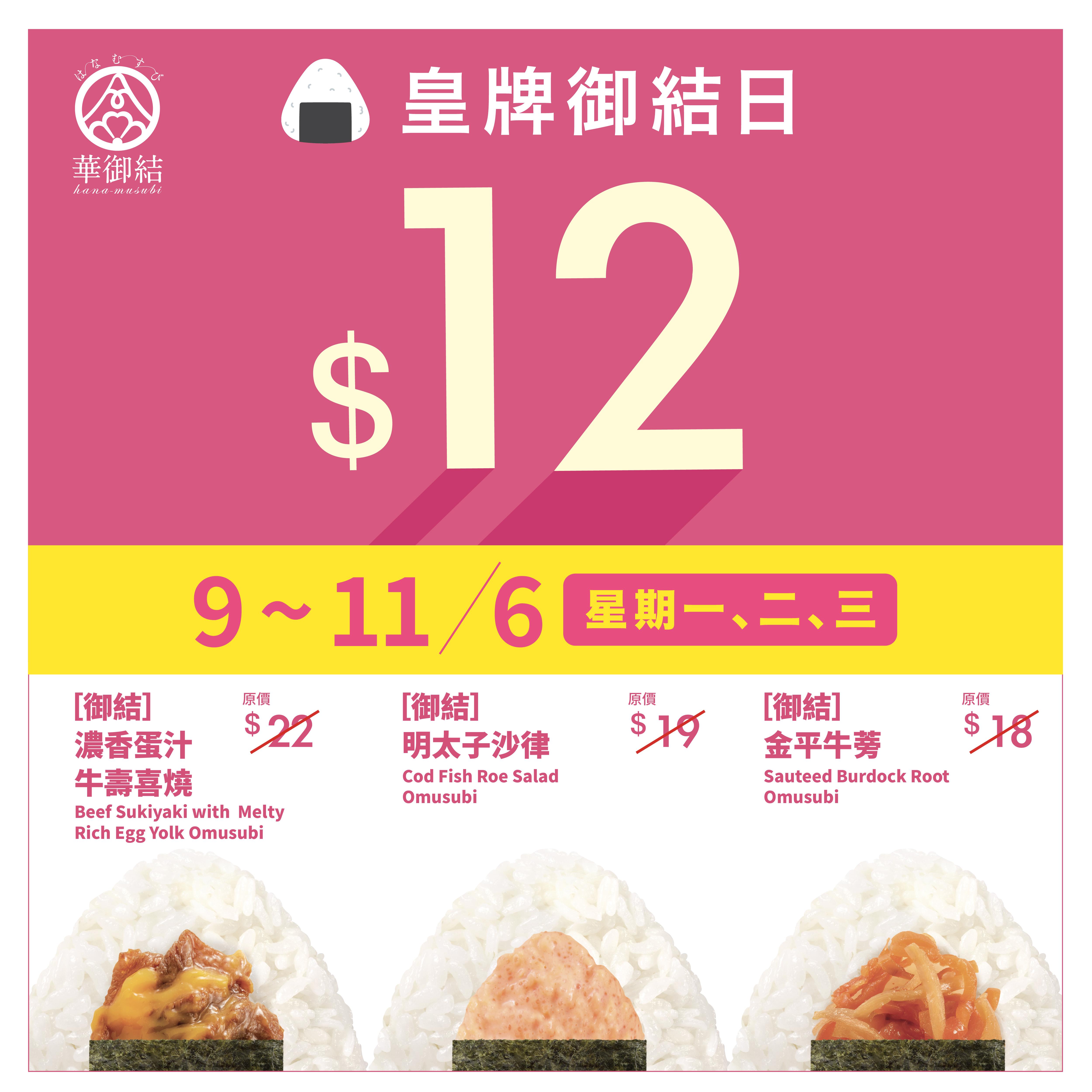 華御結$12御結限時5日 首度加入特製醬燒素牛肉!明太子沙律/蛋汁牛壽喜燒/三文魚