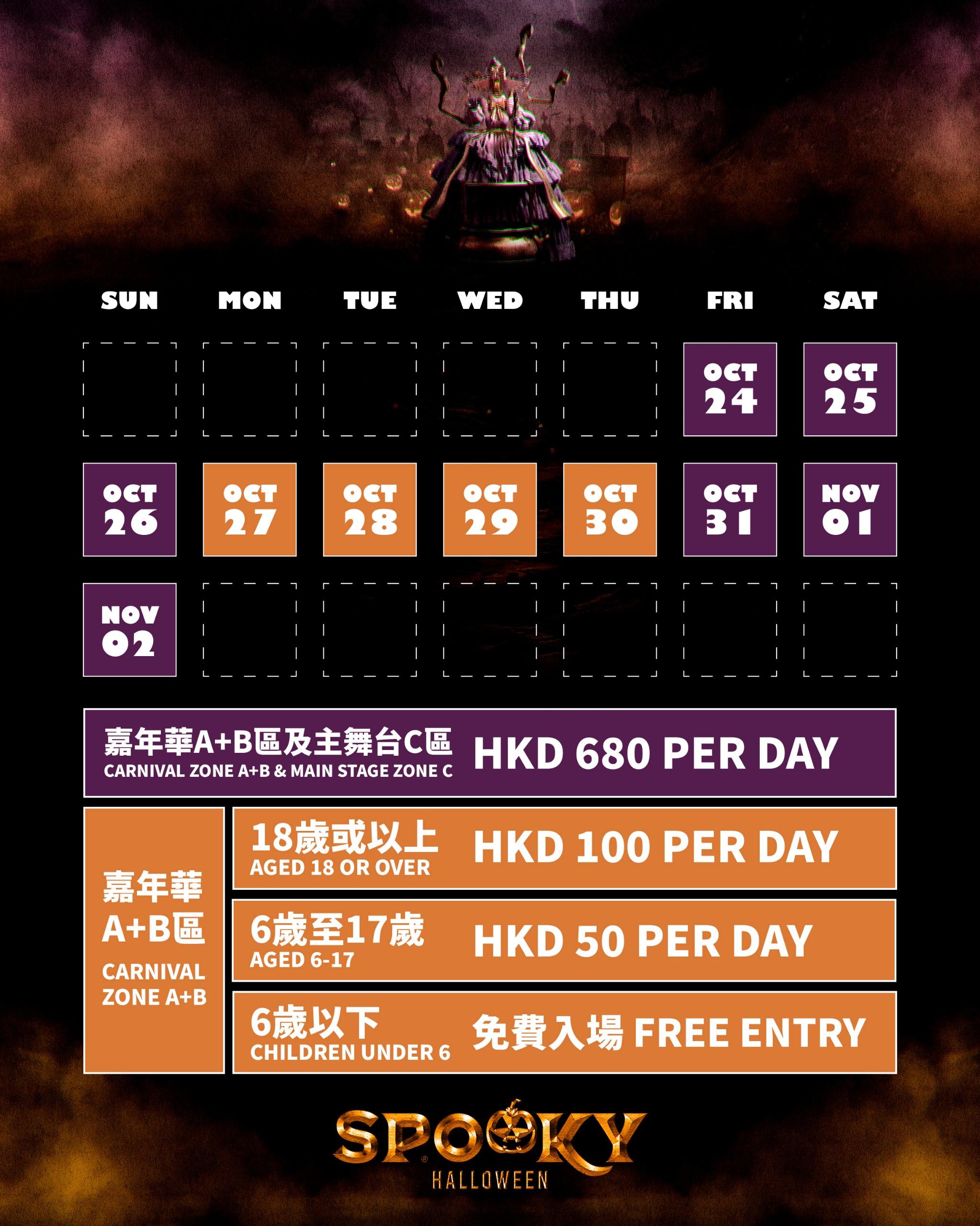 10月31日的SPOOKY Halloween將萬聖節嘉年華氣氛推向最高點,為令觀眾們在萬聖節當日擁有最難忘好玩回憶,屆時將有深受國際樂迷歡迎的音樂組合登場,詳情記得留意官方公布!