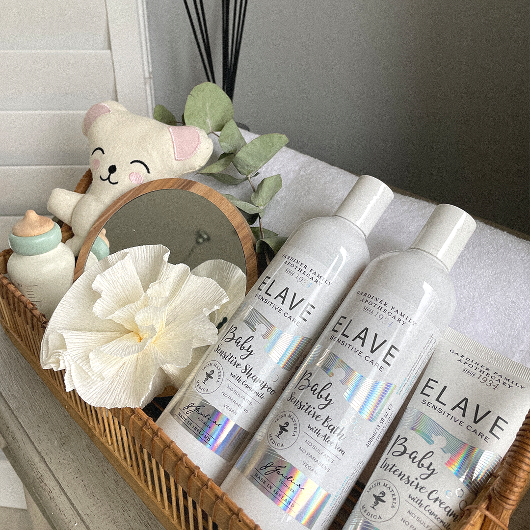 寶寶適用的Elave 嬰兒護膚套裝,包括敏感肌嬰兒沐浴露、敏感肌嬰兒深度潤膚霜、敏感肌嬰兒洗髮水,能滋養和保護敏感的嬰兒皮膚。Elave防敏感護膚品經兒科醫生認證,適合初生嬰兒和孕婦使用,特別適用於易患濕疹/皮炎的敏感肌膚及頭皮。